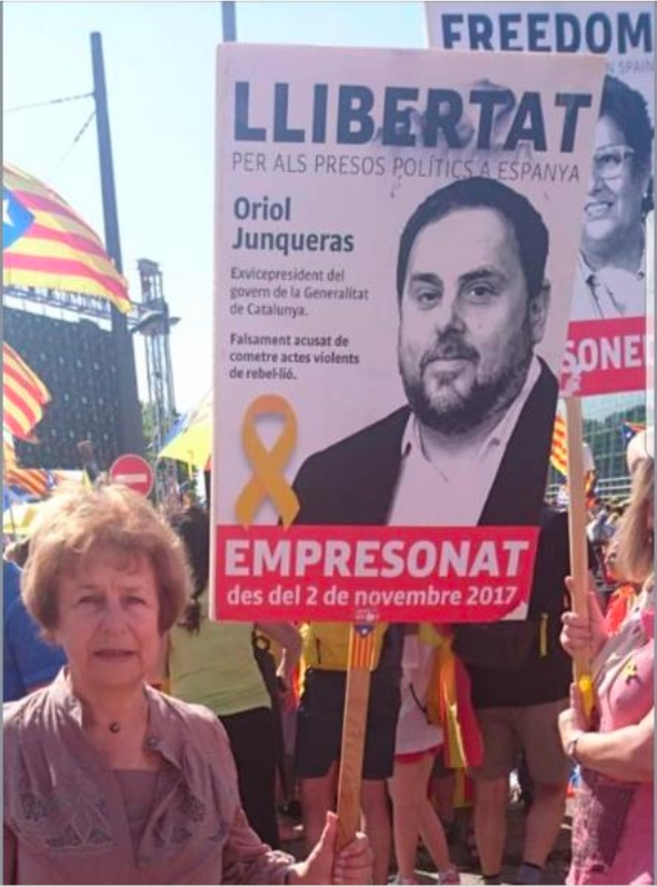 Y acompañaba el mensaje de una foto en la que ella misma portaba un cartel en defensa del golpista condenando Junqueras.