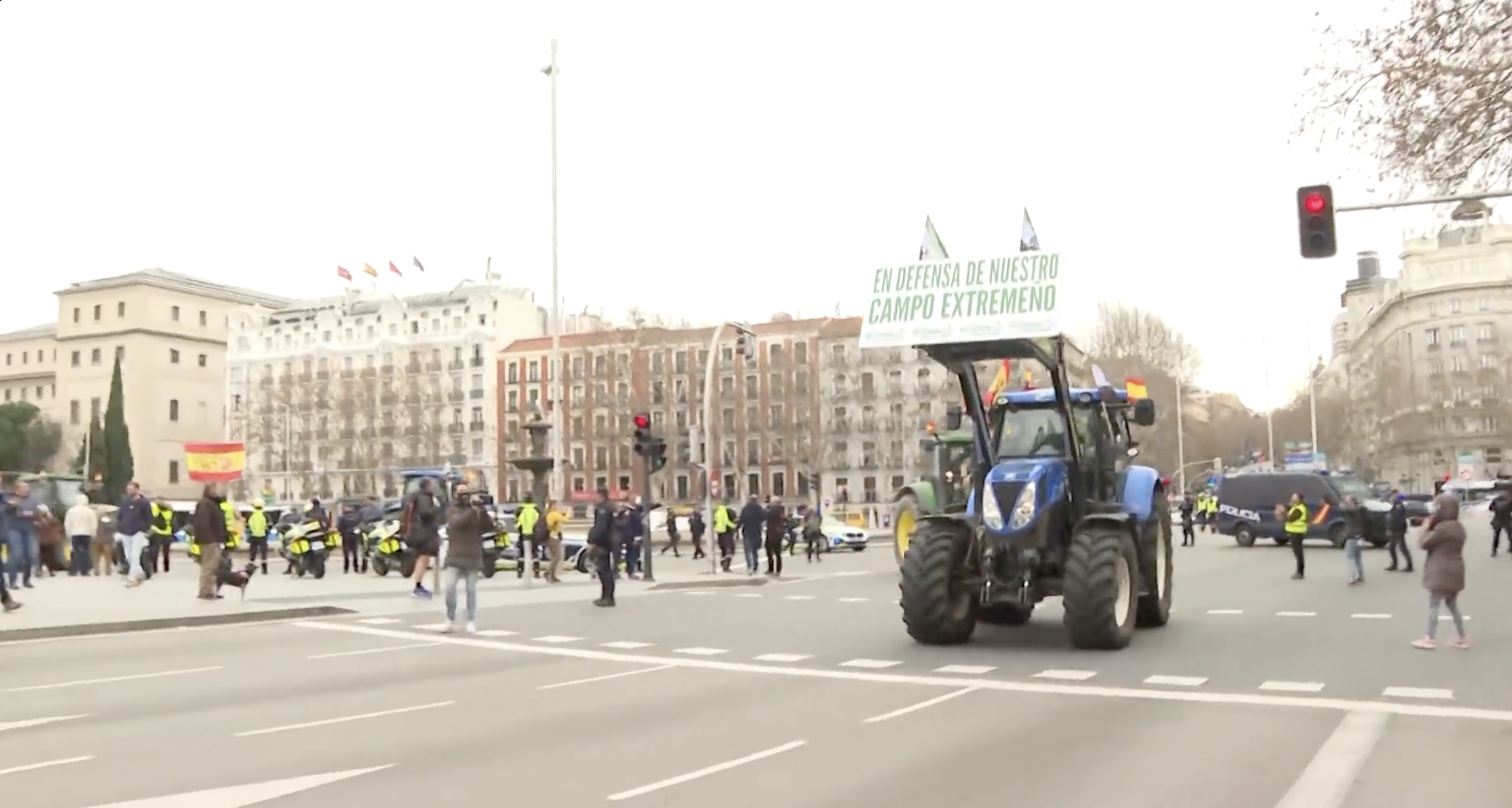 Las protestas no cesan, decenas de agricultores y varios tractores se han presentado este jueves frente al Ministerio de Agricultura.