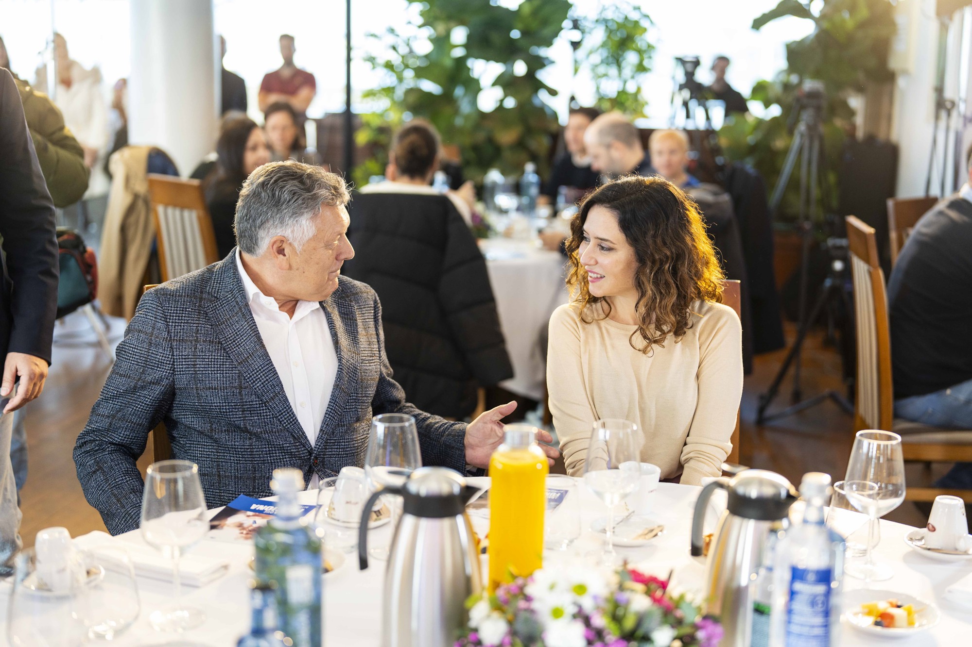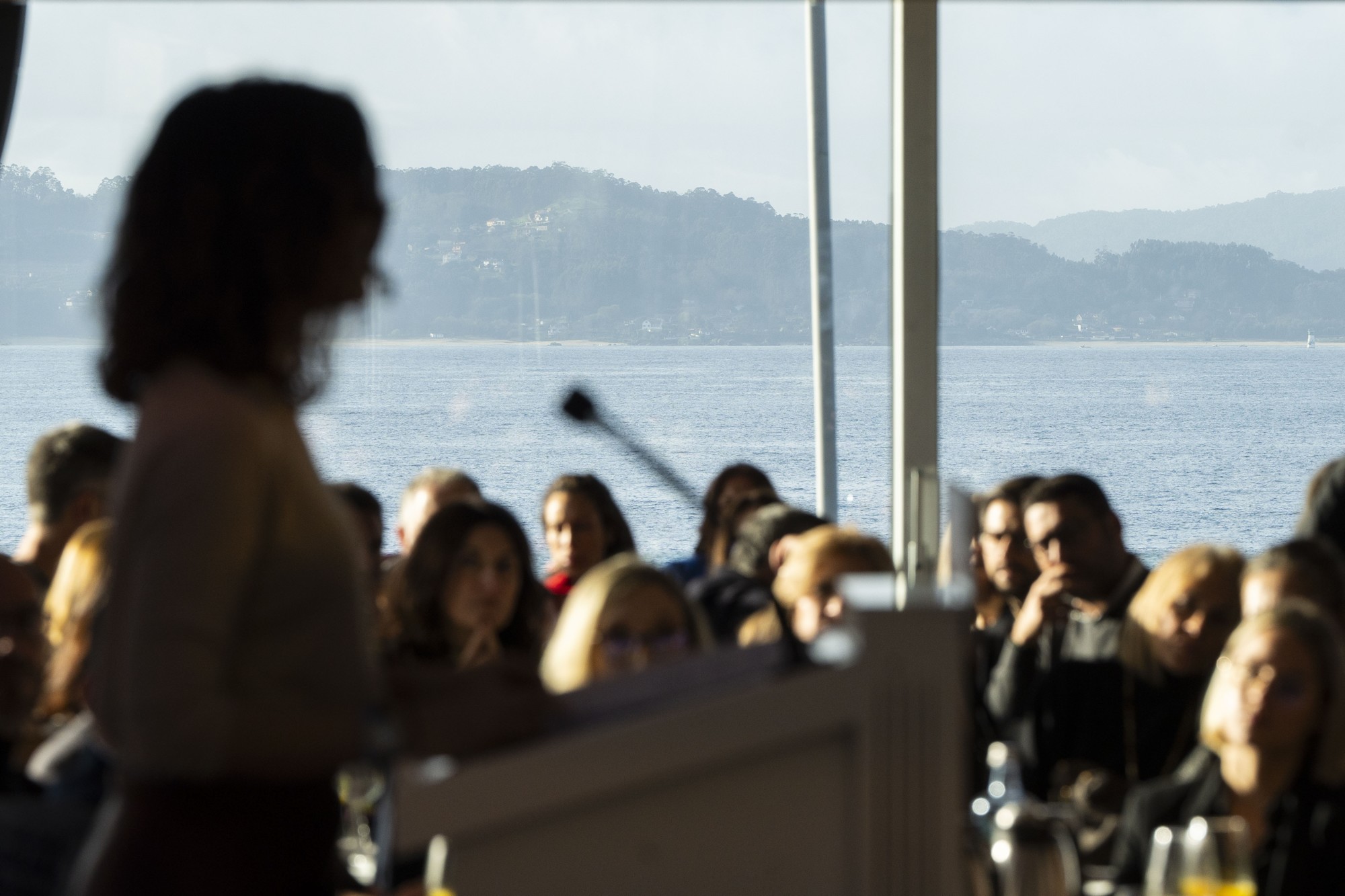 La presidenta madrileña continúa en Galicia volcada en la campaña de las elecciones del domingo y este viernes participó en un encuentro con empresarios gallegos.