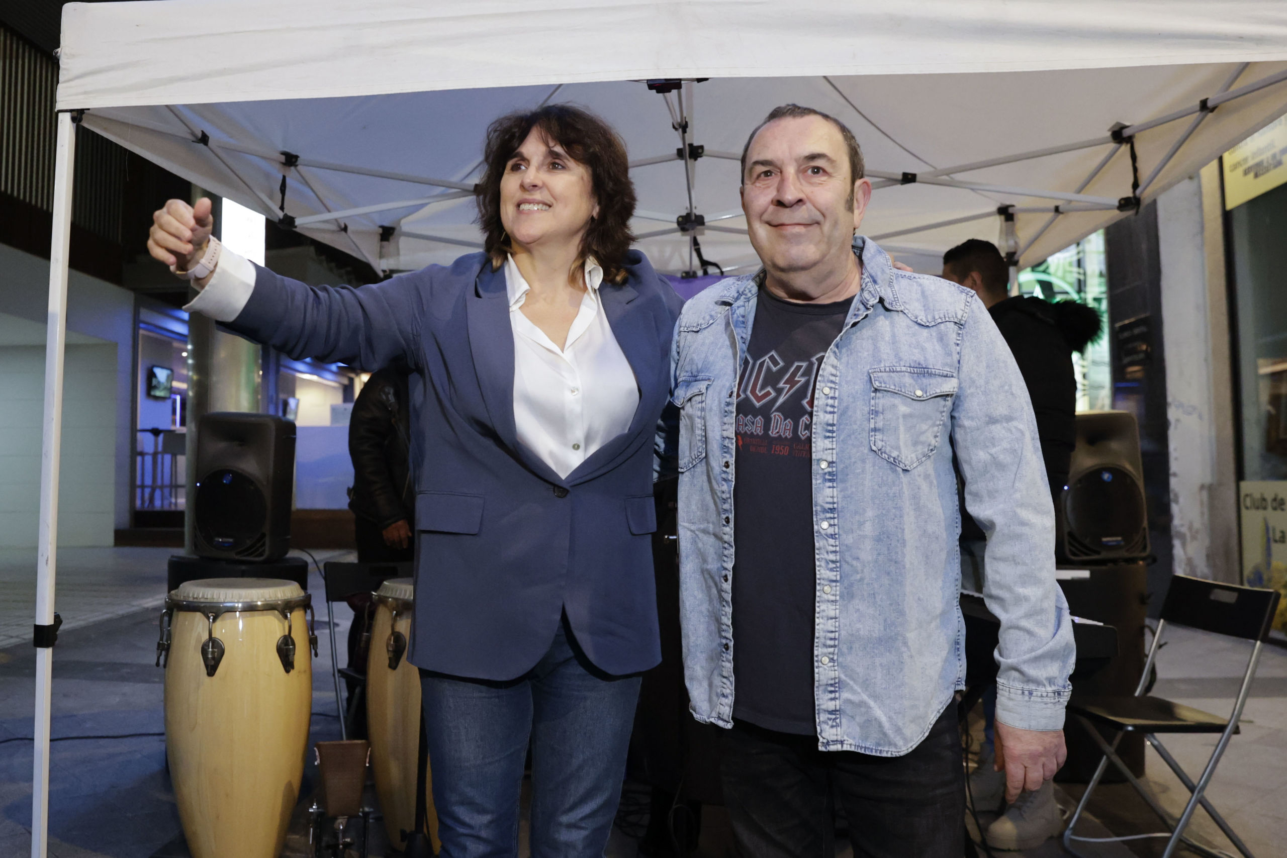 La candidata de Podemos a la presidencia de la Xunta de Galicia, Isabel Faraldo, junto a Víctor Ferreiro, número uno de Podemos en Orense, durante el acto de cierre de campaña. Ningún sondeo vaticina escaños para el partido morado.