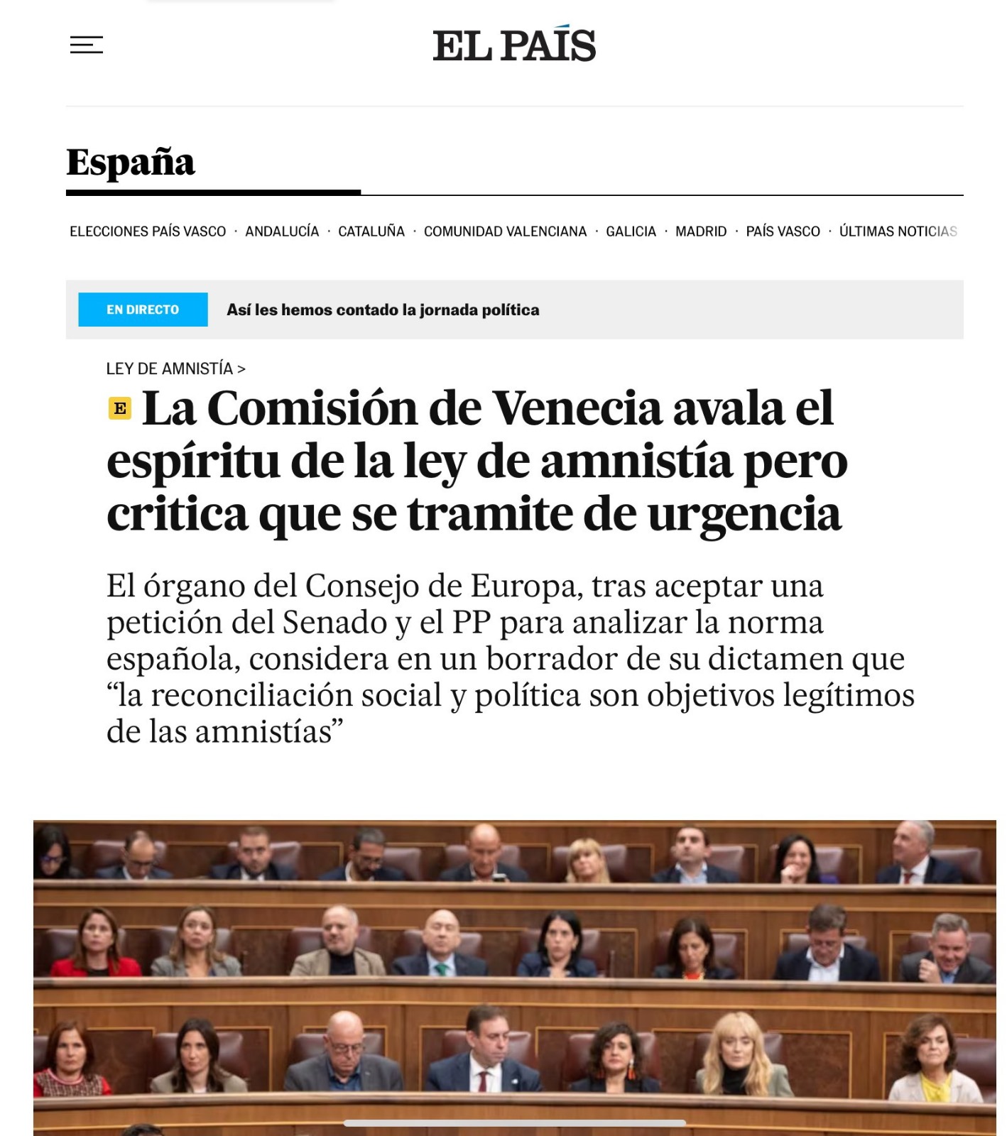 Unas semanas después de esos encuentros, Moncloa filtraba ayer un primer borrador sobre el informe preliminar de la Comisión de Venecia. Un borrador que tergiversa y modifica lo publicado en el informe de la Comisión, a favor de los intereses de Pedro Sánchez. Según el Gobierno y los medios de comunicación afines, el órgano consultivo del Consejo de Europa avala la Ley de Amnistía y no considera que afecte en ningún caso a la separación de poderes.