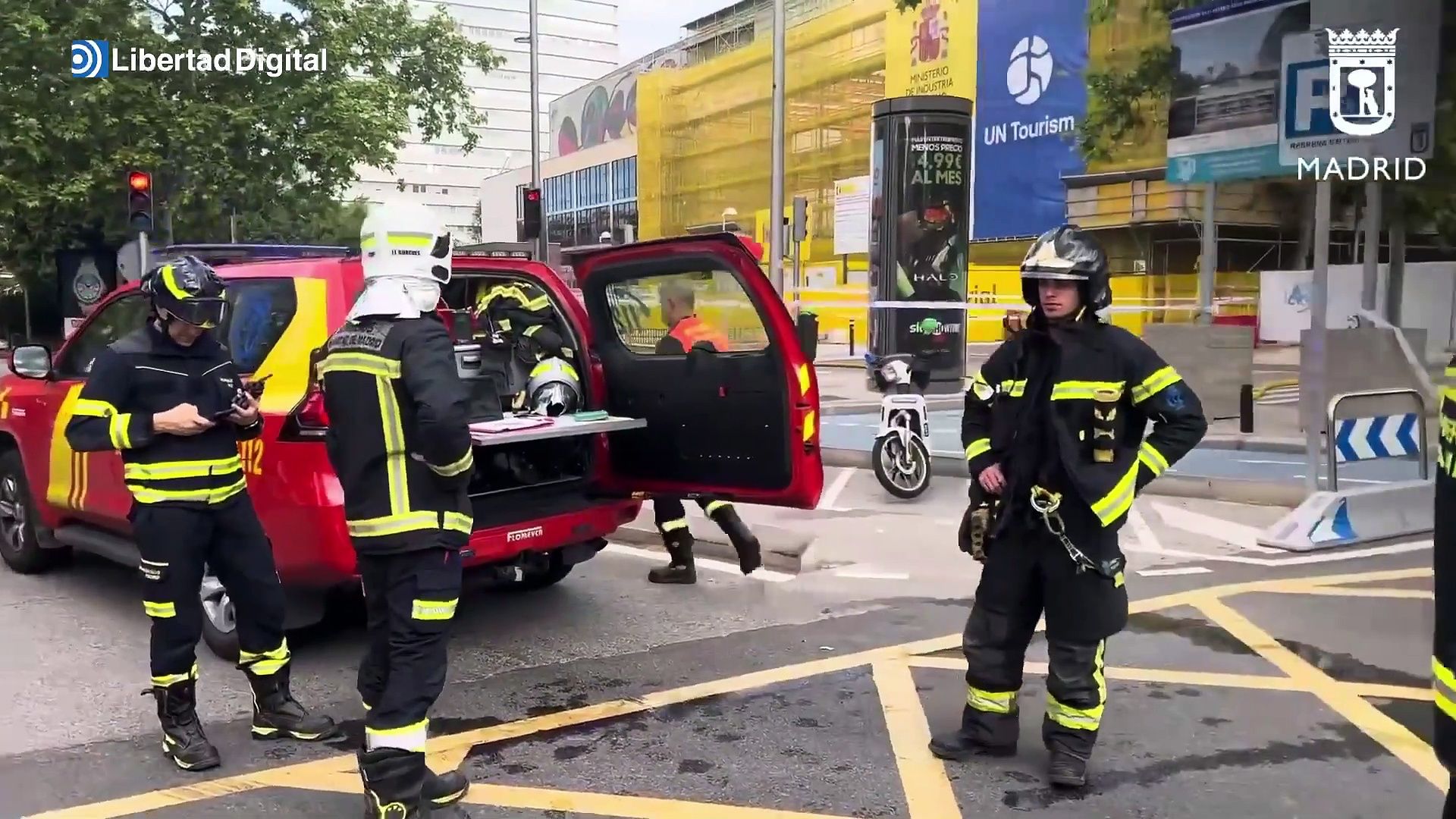 Emergencias Madrid han acudido al Paseo de la Castellana de Madrid, donde se ha producido una fuga de gas por la rotura de una tubería en el exterior del Bernabéu.