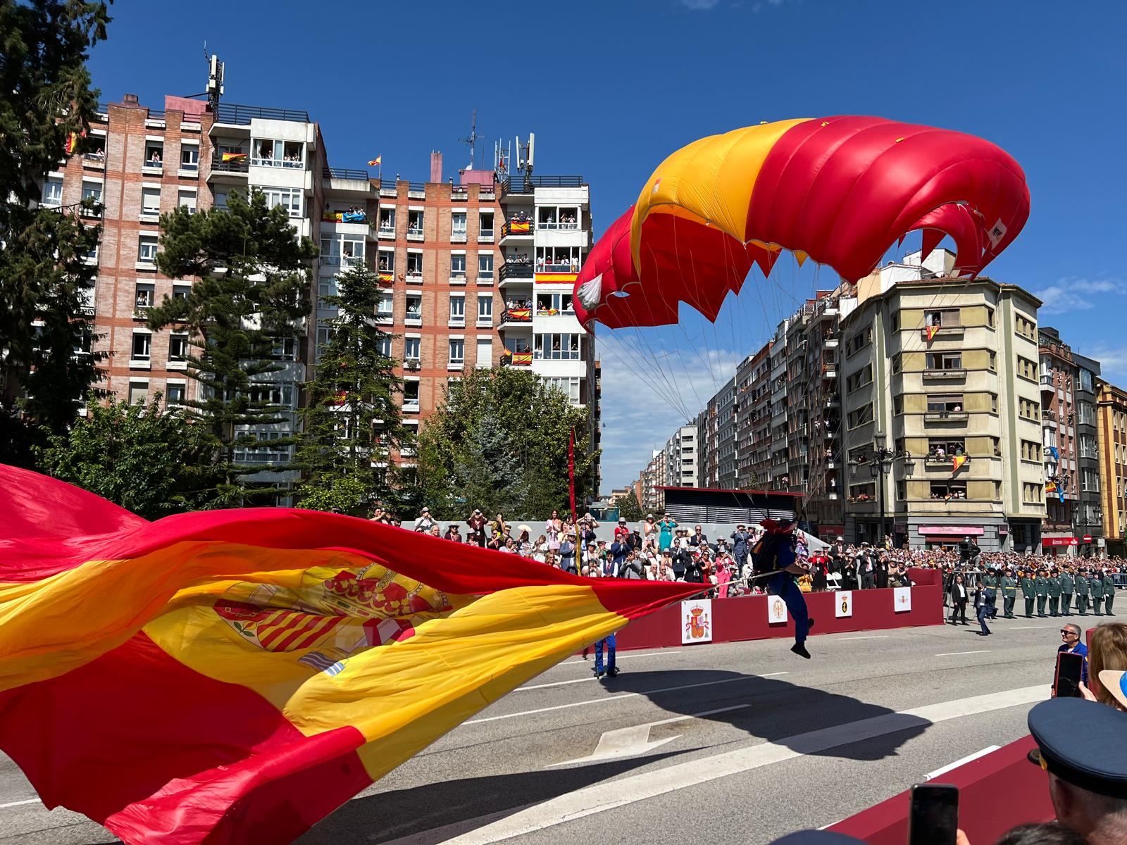 La PAPEA ha bajado la bandera de España desde los cielos de Oviedo.