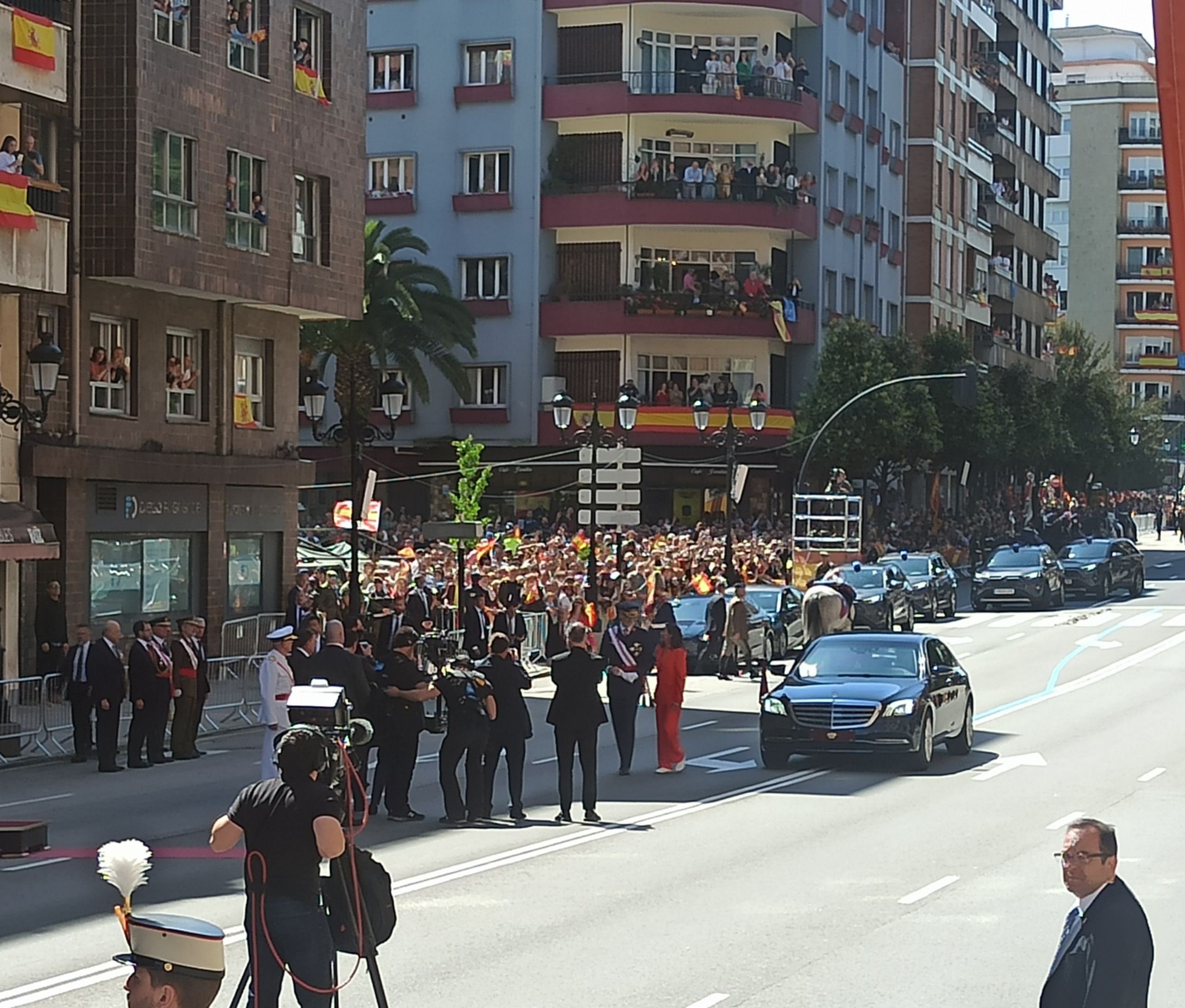 Los Reyes de España a su llegada al desfile militar del Día de las Fuerzas Armadas