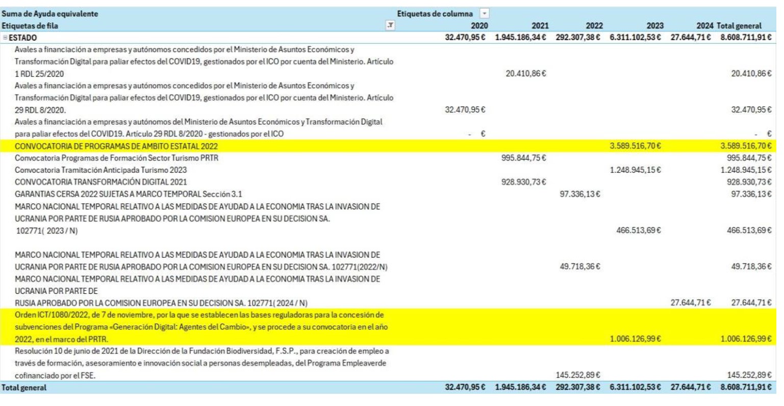 "Así con fecha 24/05/2024 se adjudica a Adalid Servicios Corporativos S.L. una subvención por un total de 500.000 euros por la Orden ICT/1080/2022, de 7 de noviembre, por la que se establecen las bases reguladoras para la concesión de subvenciones del Programa «Generación Digital: Agentes del Cambio», y se procede a su convocatoria en el año 2022, en el marco del PRTR. Cabe destacar que esta orden establece el límite de 12 millones de euros para pasar por Consejo de Ministros", resalta el escrito.