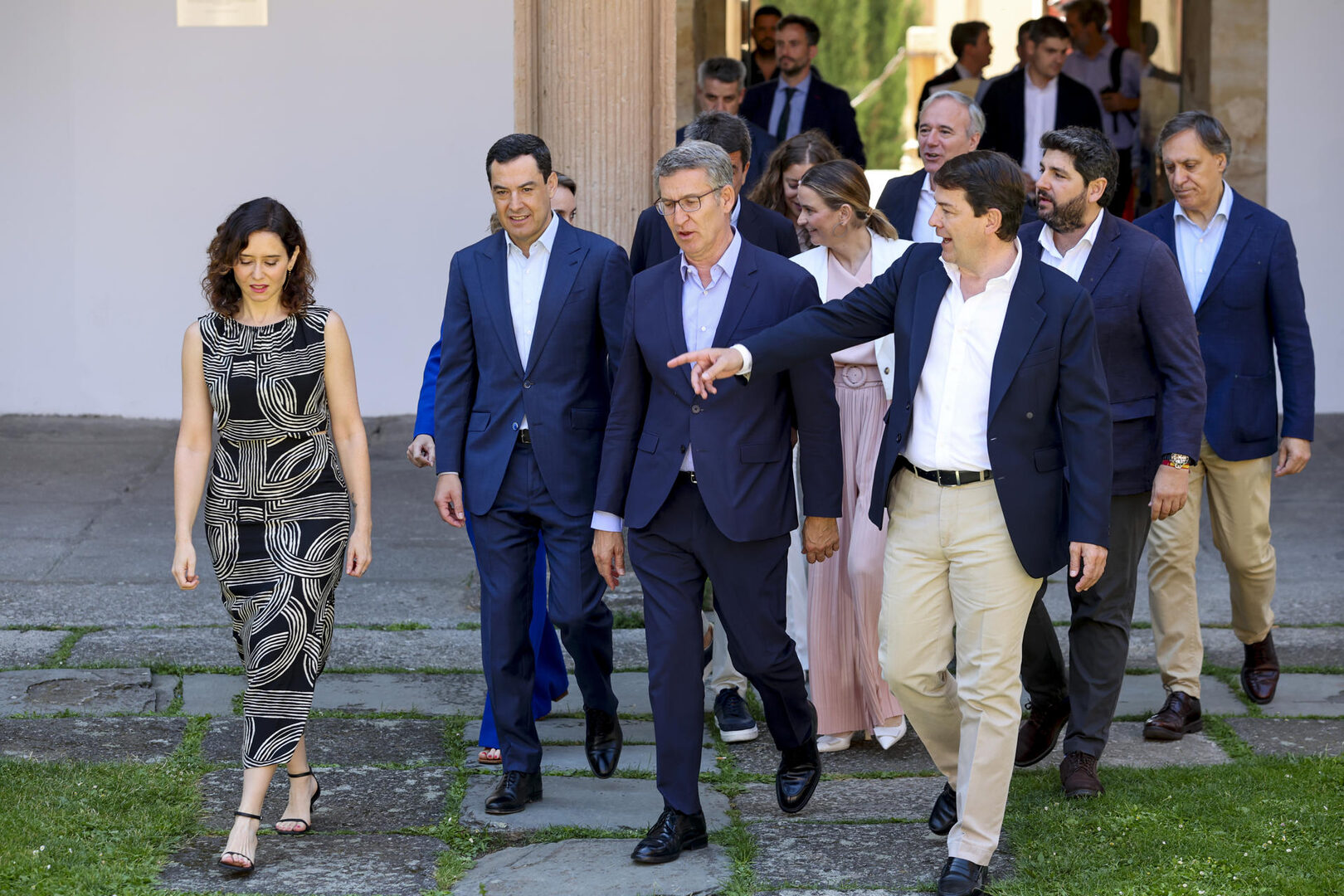 Siete presidentes y cinco consejeros educativos de Castilla y León, Andalucía, Madrid, Murcia, Comunidad Valenciana, Aragón, Galicia, Extremadura, Baleares, La Rioja, Cantabria y Canarias (gobernada por CC pero con consejería de Educación del PP) han suscrito un pacto al que también se han adherido los consejeros de Ceuta y Melilla como "un gesto político". Uno a uno, los barones populares han ido saliendo al centro del claustro del colegio arzobispo Fonseca para proclamar con solemnidad: "Firmo este acuerdo por una Ebau común".