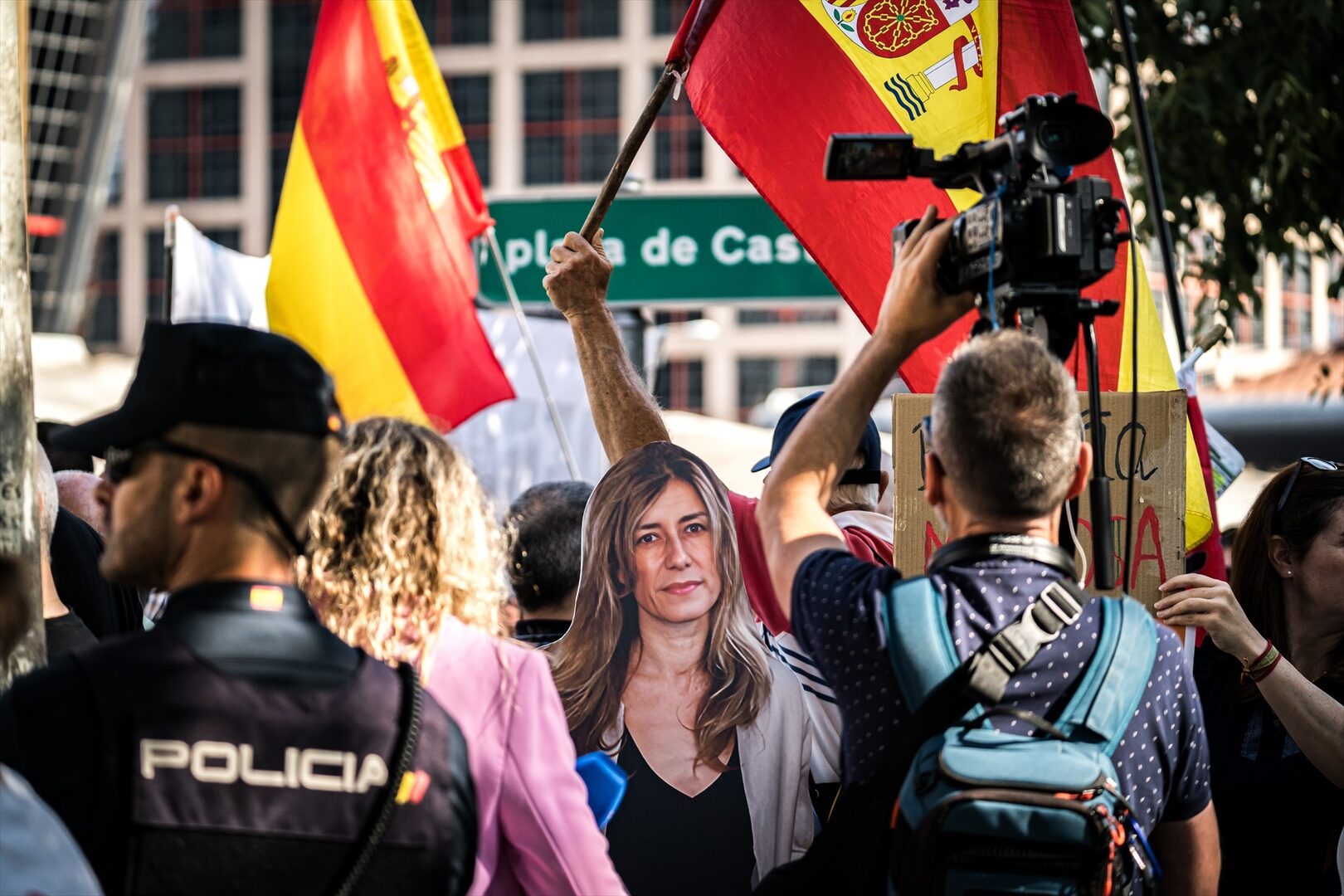 En el exterior de los juzgados de Plaza de Castilla se desplegó un dispositivo policial sin precedentes para impedir que Begoña Gómez fuera captada por las imágenes de algún medio o increpada por aquellos que le esperaban a las puertas del juzgado.