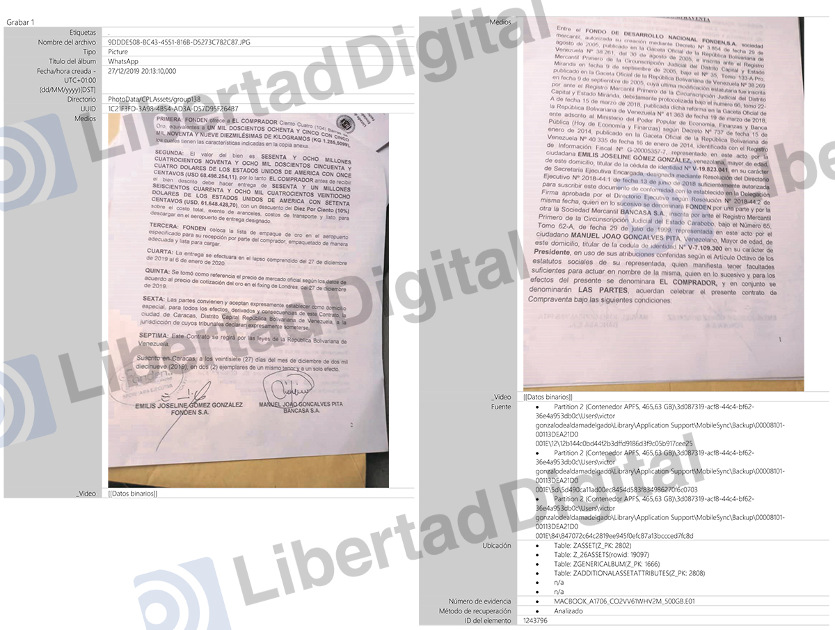 El informe de 233 páginas de la UCO publicado por LD señalaba sobre dicho contrato que "contenido en el Macbook de ALDAMA se hallado una fotografía de un contrato de compraventa en el que el Fondo de Desarrollo Nacional de Venezuela (FONDEN) ofrece 104 barras de oro a BANCASA SA, por valor de 68.498.254,11 dólares americanos".