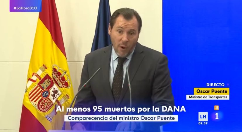 El Ministro de Transportes y Movilidad Sostenible, Óscar Puente, compareció esta mañana para informar sobre el estado de las infraestructuras afectadas por la DANA, que ha dejado un saldo trágico de al menos 95 fallecidos y cuantiosos daños materiales. Sin embargo, su intervención ha generado críticas en redes sociales por no seguir el protocolo de luto en su vestimenta ni en la presentación de la bandera nacional.