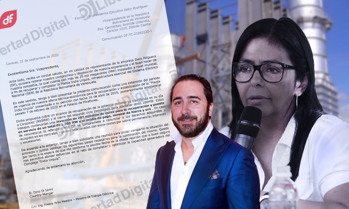 El comisionista Víctor de Aldama negoció con la nº 2 de la dictadura venezolana, Delcy Rodríguez, un plan de 287 millones de euros para impulsar una central térmica de la empresa Duro Felguera en Venezuela a cambio de hierro y oro. Concretamente, se trataba de la Planta termoeléctrica ‘India Urquía’ ubicada en el sector La Virginia, en el estado Miranda (norte) y que fue inaugurada en septiembre de 2013 por el régimen de Nicolás Maduro.