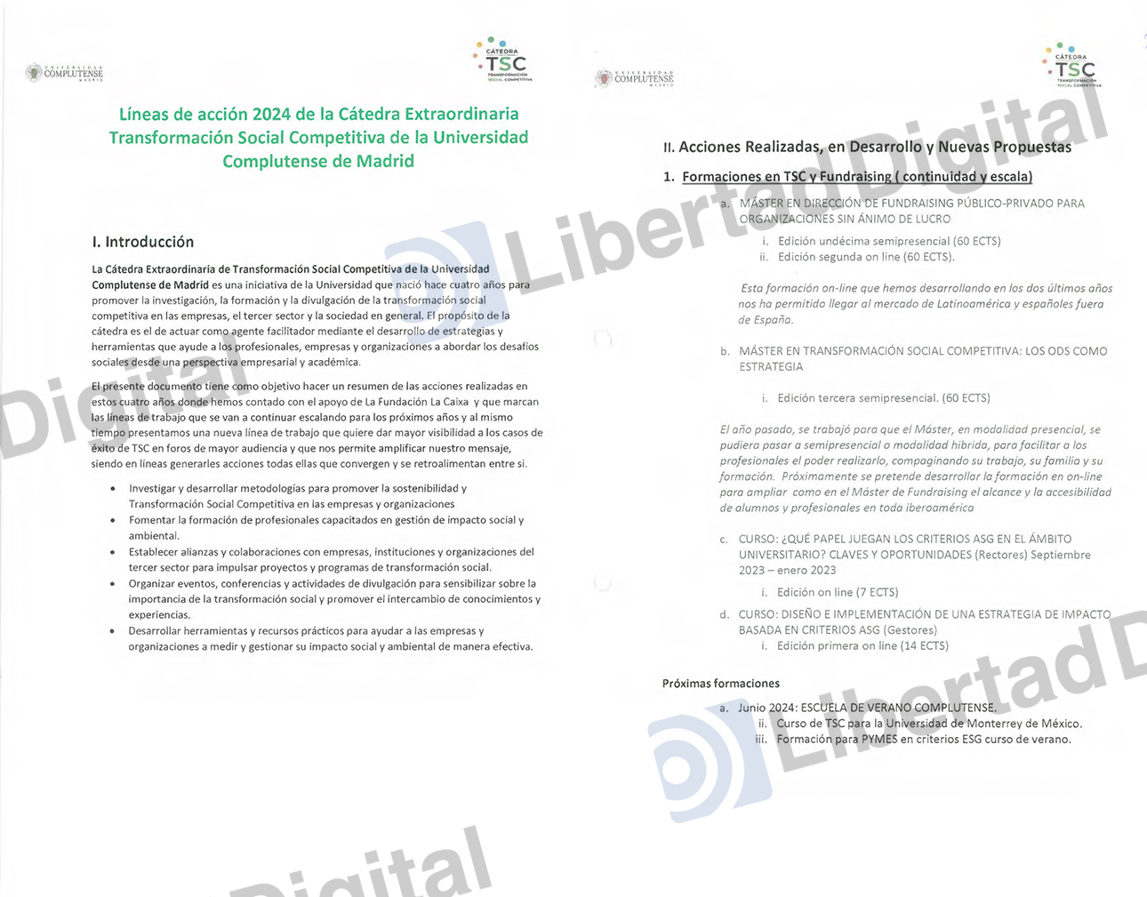 La propuesta de acciones y proyecciones para los próximos años refleja el compromiso de la Cátedra con la sostenibilidad y la transformación social. Hemos estado evaluando cuidadosamente las necesidades actuales y futuras de nuestra cátedra y hemos identificado que estas acciones contribuyen a fortalecer el objetivo de la misma y a garantizar que continuemos brindando una formación de calidad, ofrezcamos unas herramientas que permita que se prepare tanto nuestro tejido empresarial, organizaciones y profesionales para los desafíos del mundo real tanto en materia social como medioambiental.