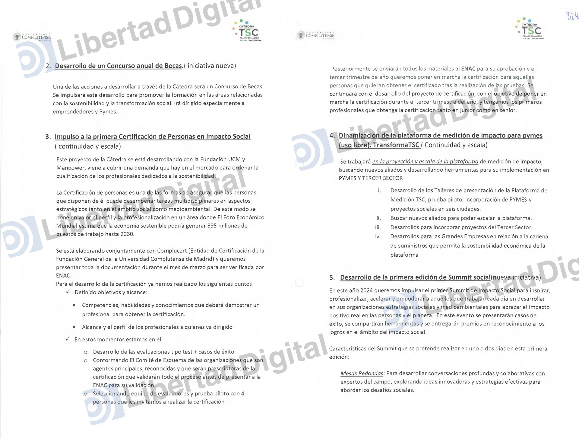 Begoña Gómez envía al subdirector de la Fundación La Caixa un documento de 6 páginas sobre las líneas estratégicas de la Cátedra. En las conclusiones del mismo, solicita el nuevo presupuesto de 40.000 euros anuales durante 4 años para su Cátedra TSC de la Complutense.