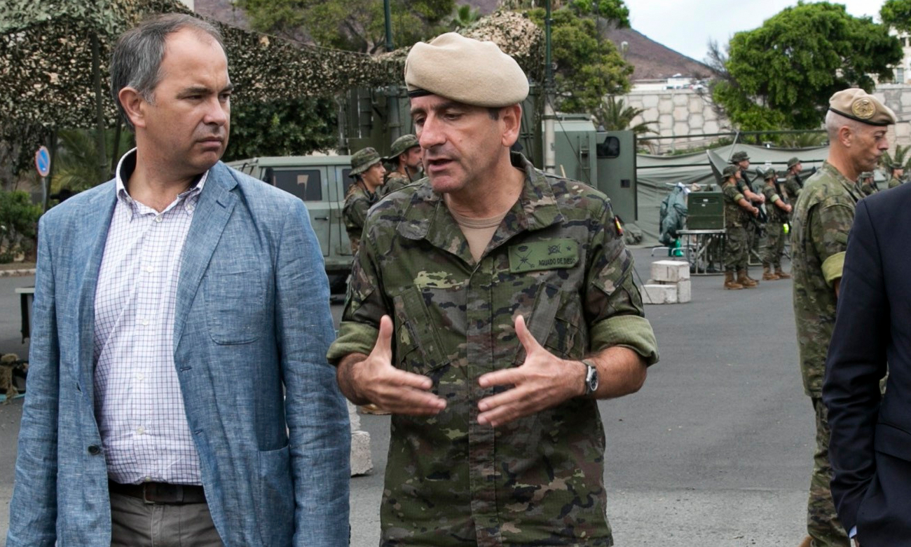 Aguado, nacido en 1961 y actualmente en la reserva, cuenta con una extensa trayectoria militar. Perteneciente a la XL Promoción de la Academia General Militar, ascendió a teniente en 1985. Entre sus destinos destacan unidades de montaña en Jaca, San Sebastián y Pamplona, además de mandos en el Cuartel General de la Brigada de Montaña y la División de Operaciones del Estado Mayor del Ejército.