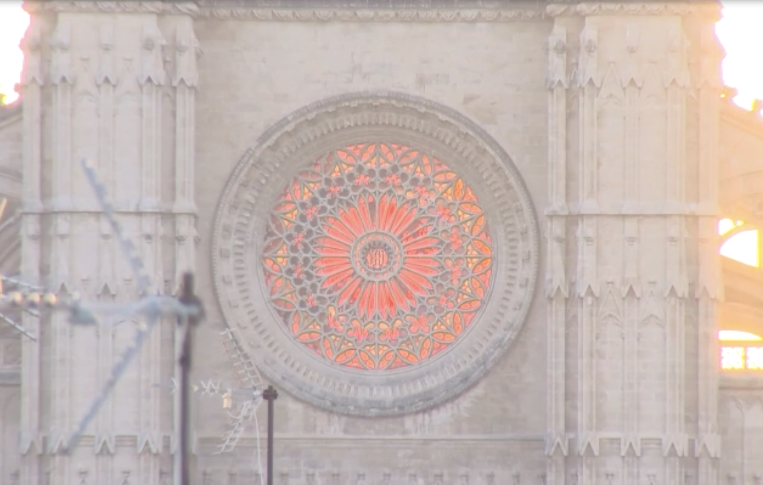 A las ocho y diez de la mañana comenzaba el espectáculo en la ciudad de Palma, en la isla de Mallorca. Los más madrugadores han disfrutado de un espectacular fenómeno lumínico en la catedral de Mallorca. Y es que a medida que se acerca el solsticio de invierno, el sol sale cada día unos grados más al sur, produciéndose la convergencia exacta entre los rayos del sol y los dos rosetones que hay en la catedral. El resultado es un inmenso caleidoscopio de color rojo fuego que, si el tiempo no lo impide, aquellos que quieran madrugar podrán disfrutar en estos próximos días.