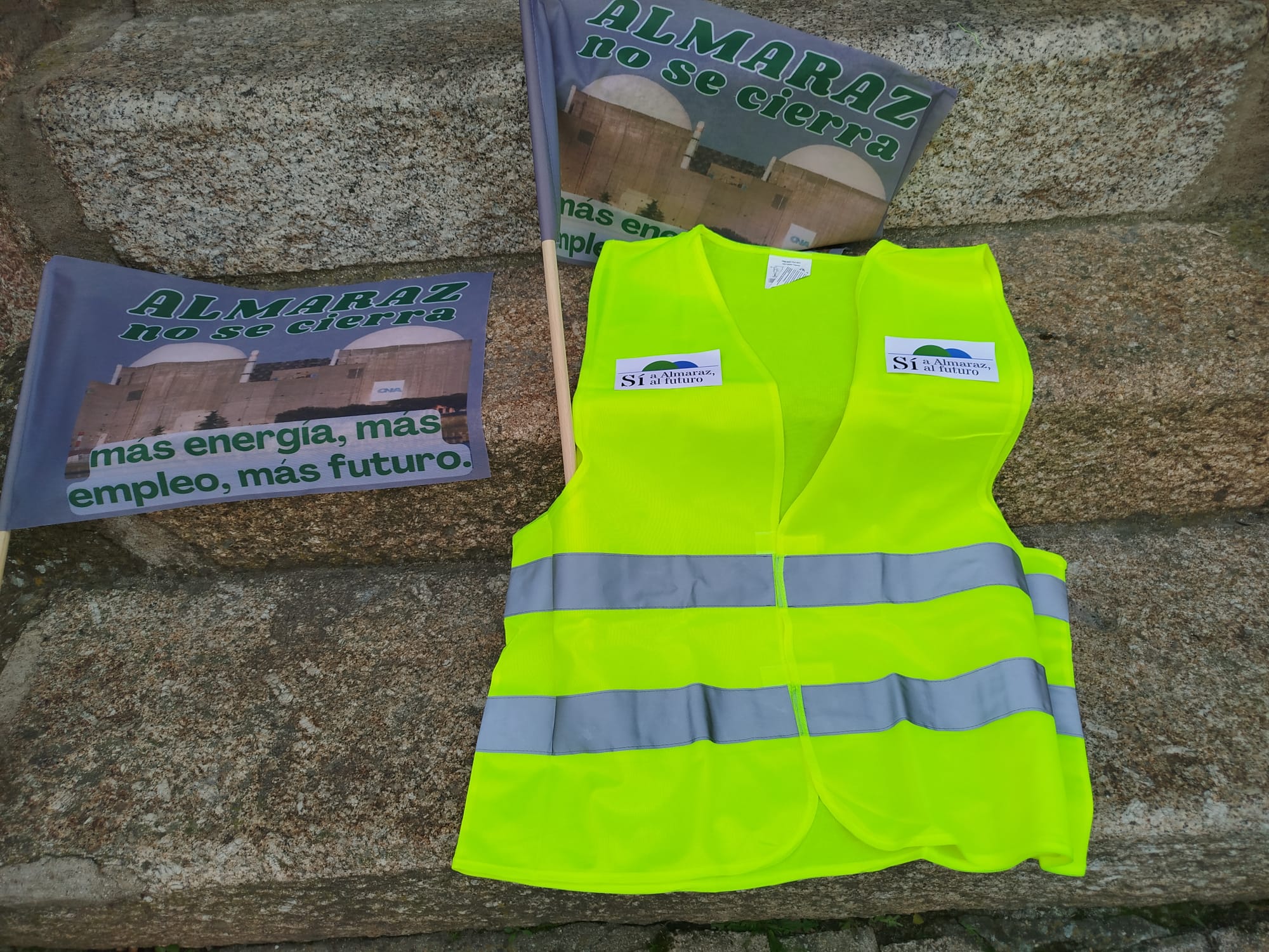 El chaleco y la pancarta entregados a los asistentes de la manifestación portaban mensajes contundentes. En la pancarta se podía leer: “Almaraz no se cierra. Más energía, más empleo, más futuro", mientras que el chaleco llevaba inscrito: “Sí a Almaraz, sí al futuro".