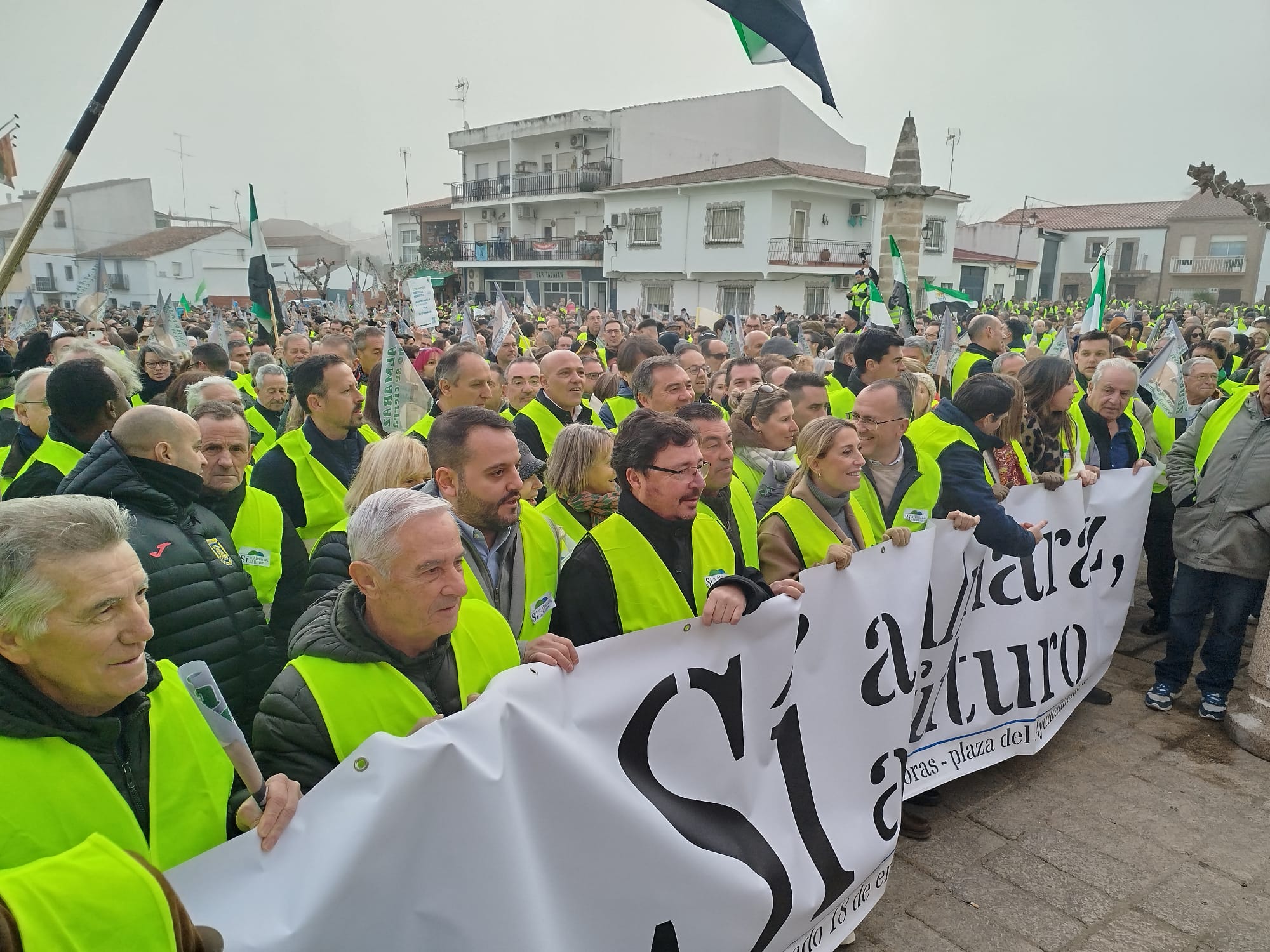 La manifestación dio inicio con la presidenta de la Junta de Extremadura Guardiola encabezando la marcha, a su izquierda, enrique Hueso, alcalde de Navalmoral de la Mata. Ambos lideraban el recorrido, simbolizando el apoyo institucional a la causa.