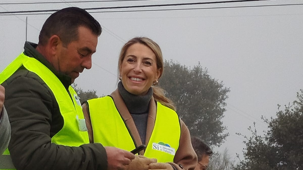 La presidenta de la Junta de Extremadura y el alcalde de Almaraz, en el acto antes de comenzar con las intervenciones.