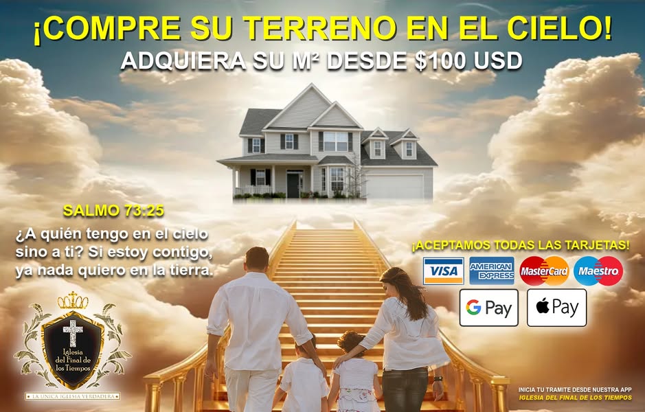 La iglesia describe la oferta como una "oportunidad celestial imperdible" destinada a quienes deseen asegurar su lugar en el cielo antes del denominado "Arrebatamiento de la iglesia".