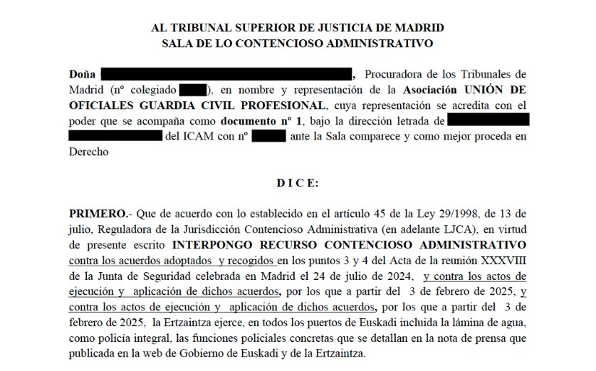 UO interpreta que "estos acuerdos no tienen fuerza de Ley ni rango suficiente para modificar lo previsto en la Ley Orgánica 2/1986 de Fuerzas y Cuerpos de Seguridad ni en la Ley Orgánica 3/1979, de 18 de diciembre, de Estatuto de Autonomía para el País Vasco". Un argumento idéntico al empleado en su recurso para frenar la expulsión del Seprona de Cataluña, que presentó a principios del pasado mes de febrero.