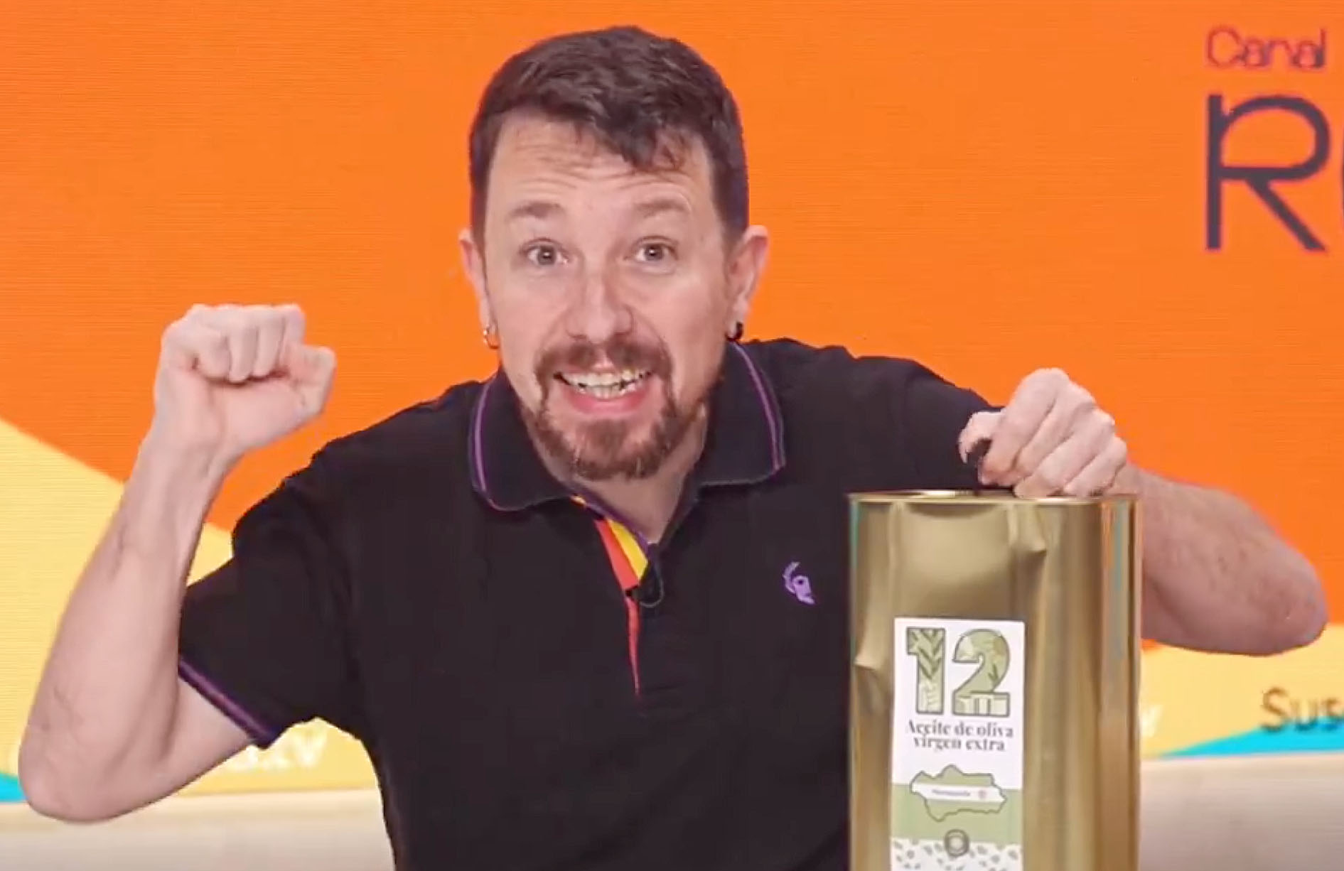 El vídeo, que en el momento que escribimos estas líneas lleva ya cerca de 250.000 reproducciones en X, comienza con un toque de humor: el propio Pablo Iglesias mirando entre espasmos de sorpresa un vídeo del programa La Revuelta. Después, el presentador, ya con la cámara enfocándole de frente, dice: "Pero madre mía Broncano, ¿qué es esa porquería?", para afirmar acto seguido y con el puño en alto que "el aceite bueno y combativo, el de Marinaleda".