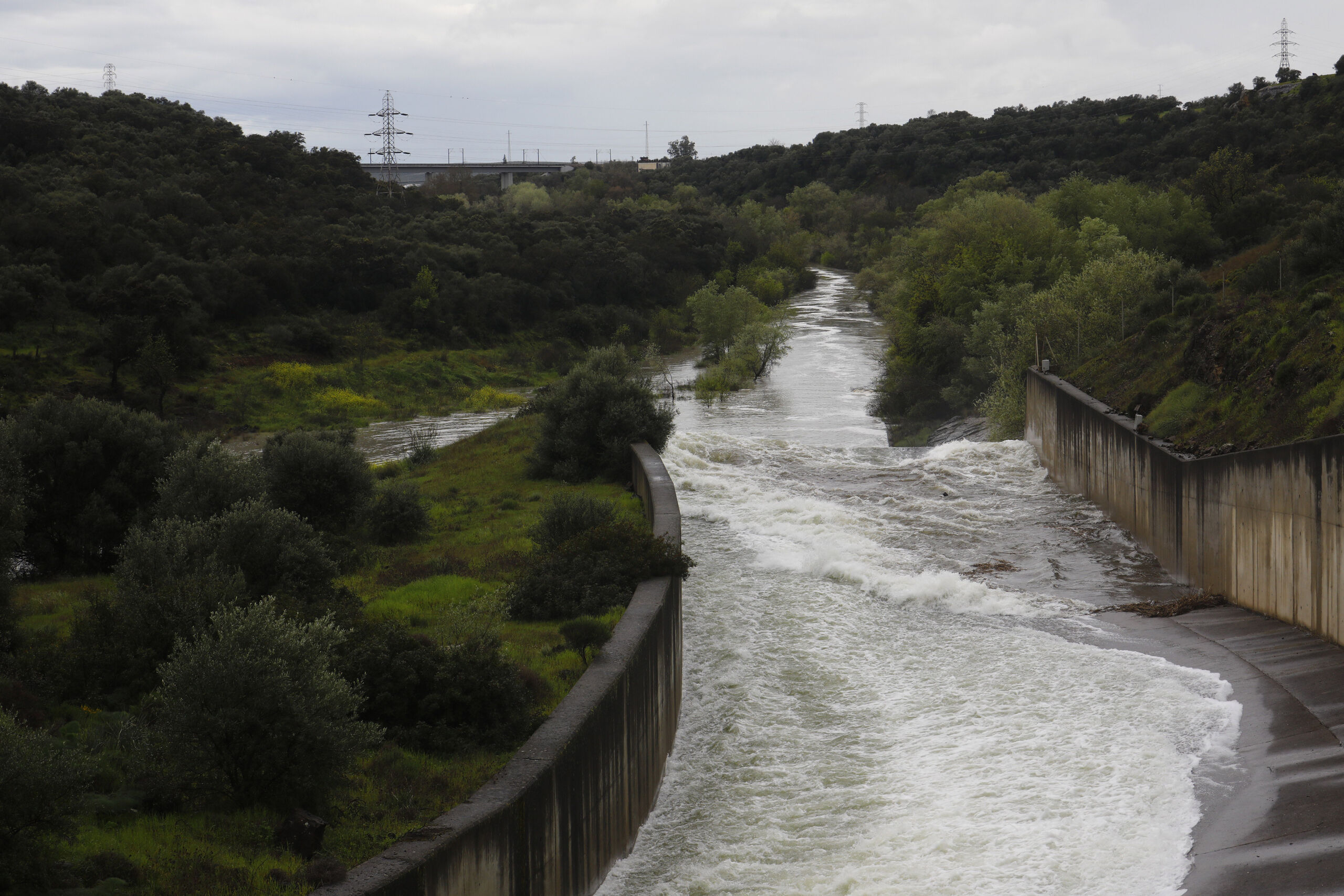 Desembalse de San Rafael de Navallana en Córdoba que vierte sus aguas al río Guadalmellato, afluente del Guadalquivir, y que sigue aliviando agua este lunes desde que se encuentra al 100,58 por ciento, un 2,6 por ciento más que ayer domingo, según los datos de la Confederación Hidrográfica del Guadalquivir consultados por EFE. EFE/Salas