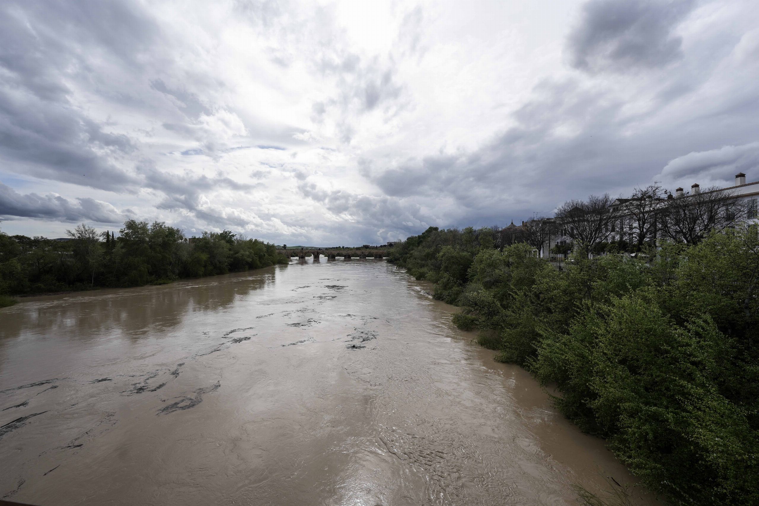 Imagen del río Guadalquivir tras las últimas lluvias que ha provocado que el umbral a su paso por el casco urbano ha entrado de nuevo este lunes en nivel naranja o de vigilancia al superar los dos metros de lámina de agua a las 14.30 horas en la estación de Casillas, según la medición del Sistema Automático de Información Hidrológica (SAIH) de la Confederación Hidrográfica del Guadalquivir (CHG).EFE / Rafa Alcaide