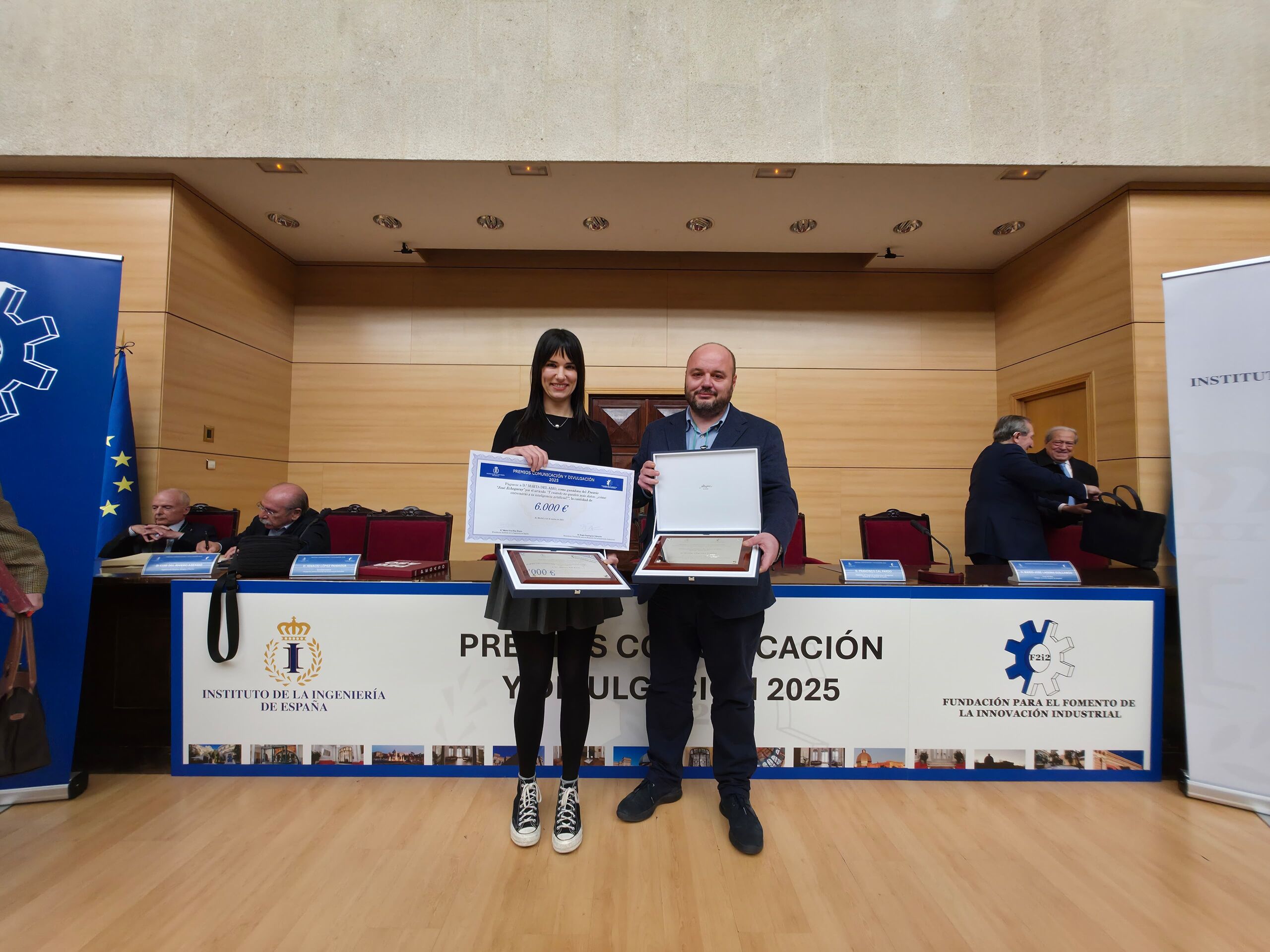 En el acto, también se ha presentado la figura de José Echegaray, Premio Nobel de Literatura, político, gran matemático y, por supuesto ingeniero, que llegó a ser ministro de Fomento y Hacienda en varias ocasiones, durante el Sexenio Revolucionario, con Amadeo I, con Serrano y con Alfonso XIII. El premio que lleva su nombre se ha hecho entrega a Marta del Amo por su artículo "Y cuando no queden más datos, ¿cómo entrenarás a tu inteligencia artificial?", en reconocimiento a "su claridad expositiva, así como por el empleo de recursos para amenizar su lectura".