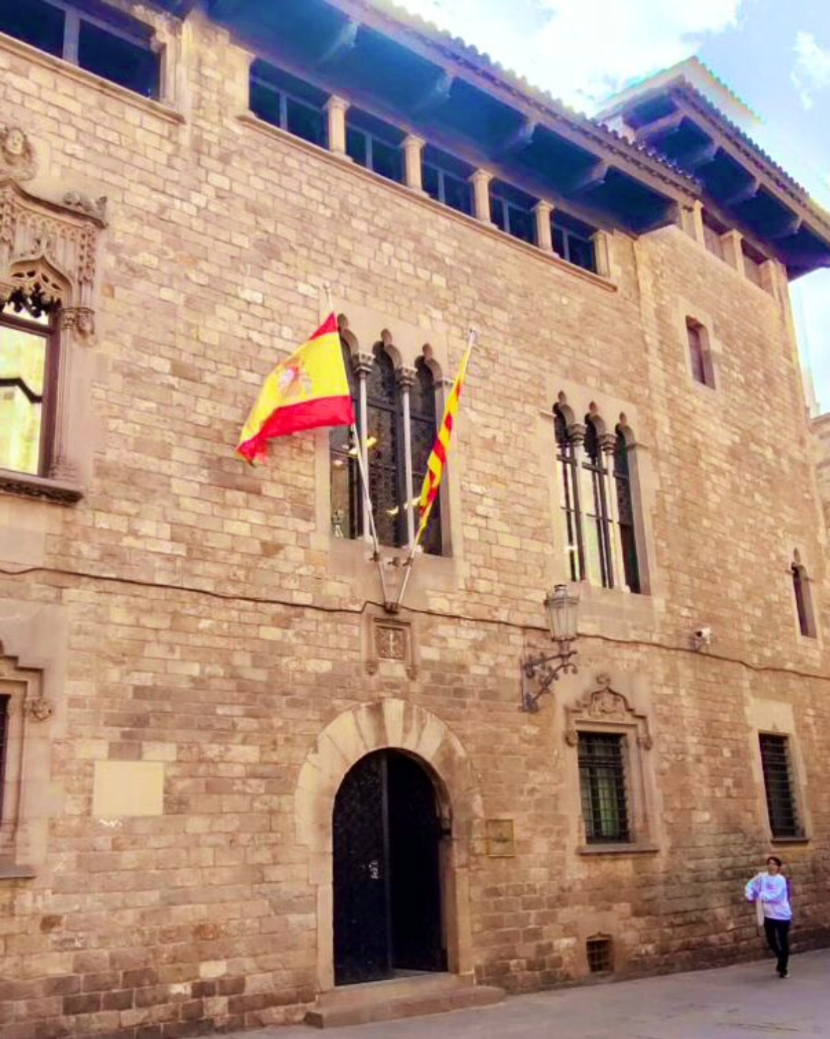La "Casa dels Canonges" (Canónigos) luce en su fachada principal dos banderas, la de España y la autonómica de Cataluña. Después de haber intentado esquivar las resoluciones legales sobre el uso y emplazamiento de los símbolos oficiales, el presidente de la Generalidad se ha visto obligado a izar la bandera nacional en uno de los edificios emblemáticos de la administración autonómica.