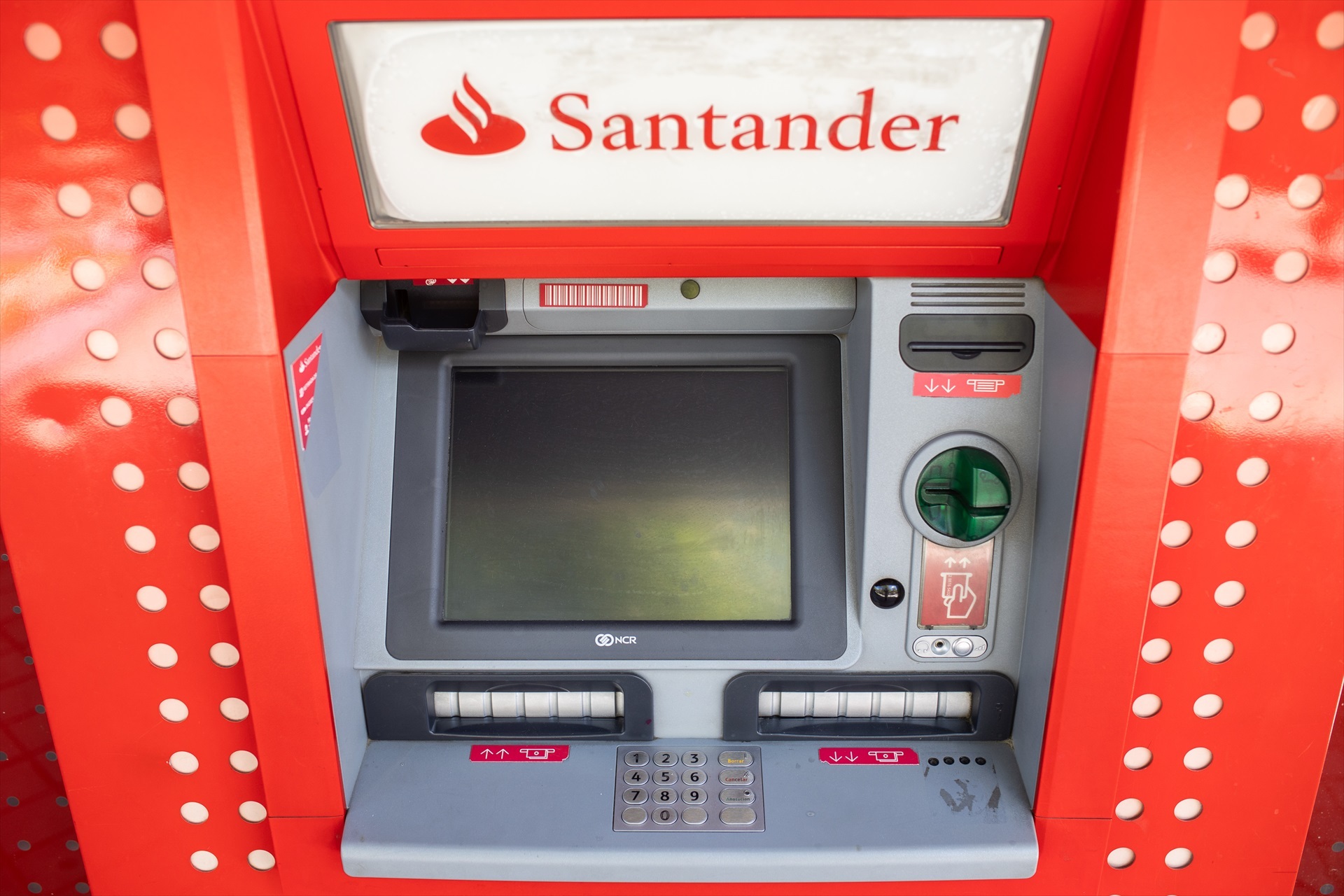 Cajero automático del Banco Santander inoperativo durante el apagón.
