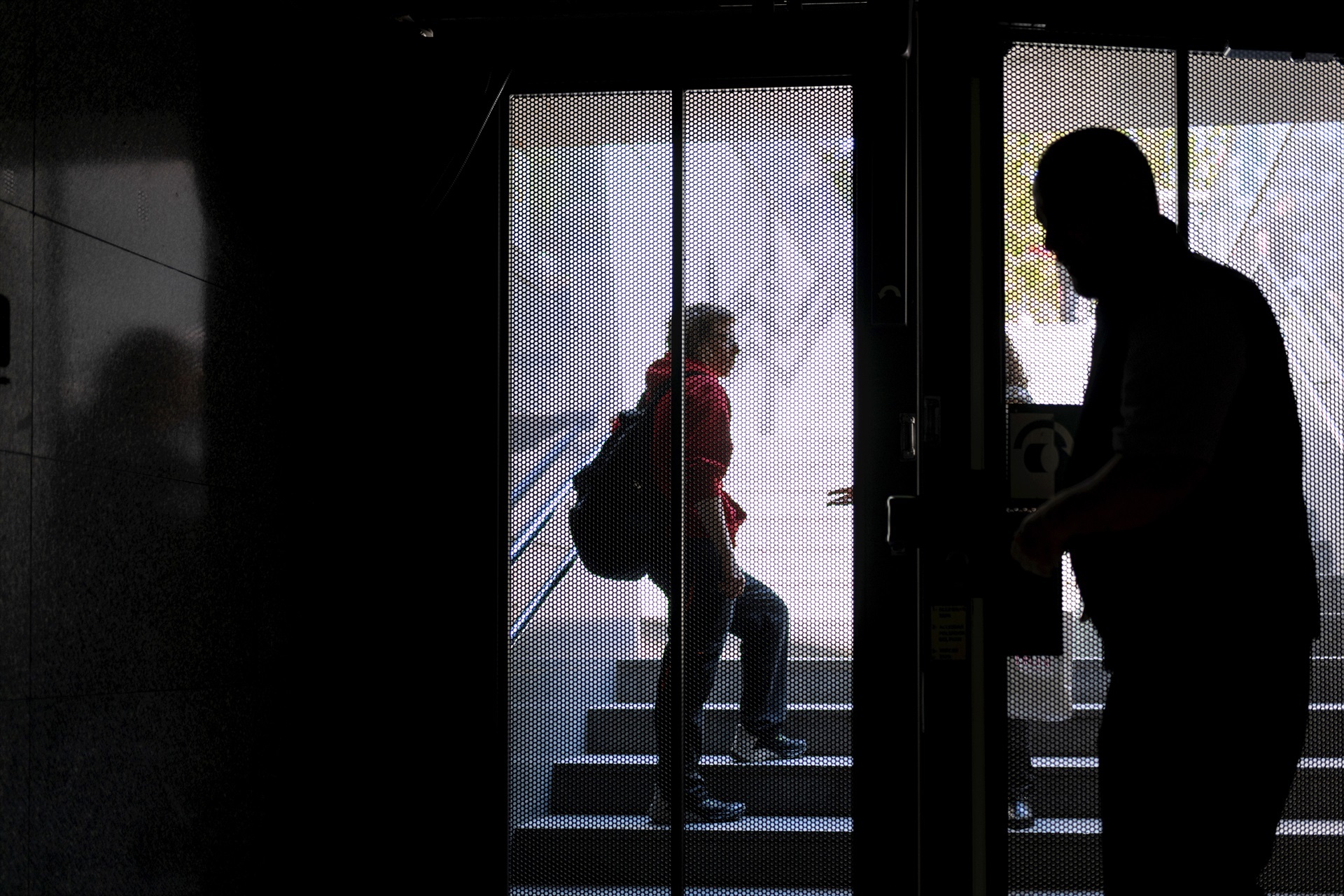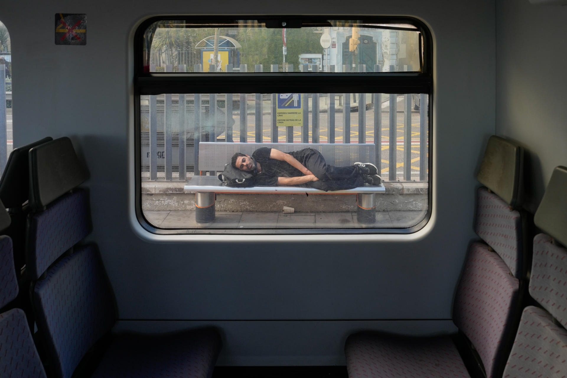Hombre durmiendo en el exterior de la estación de Atocha, en Madrid.