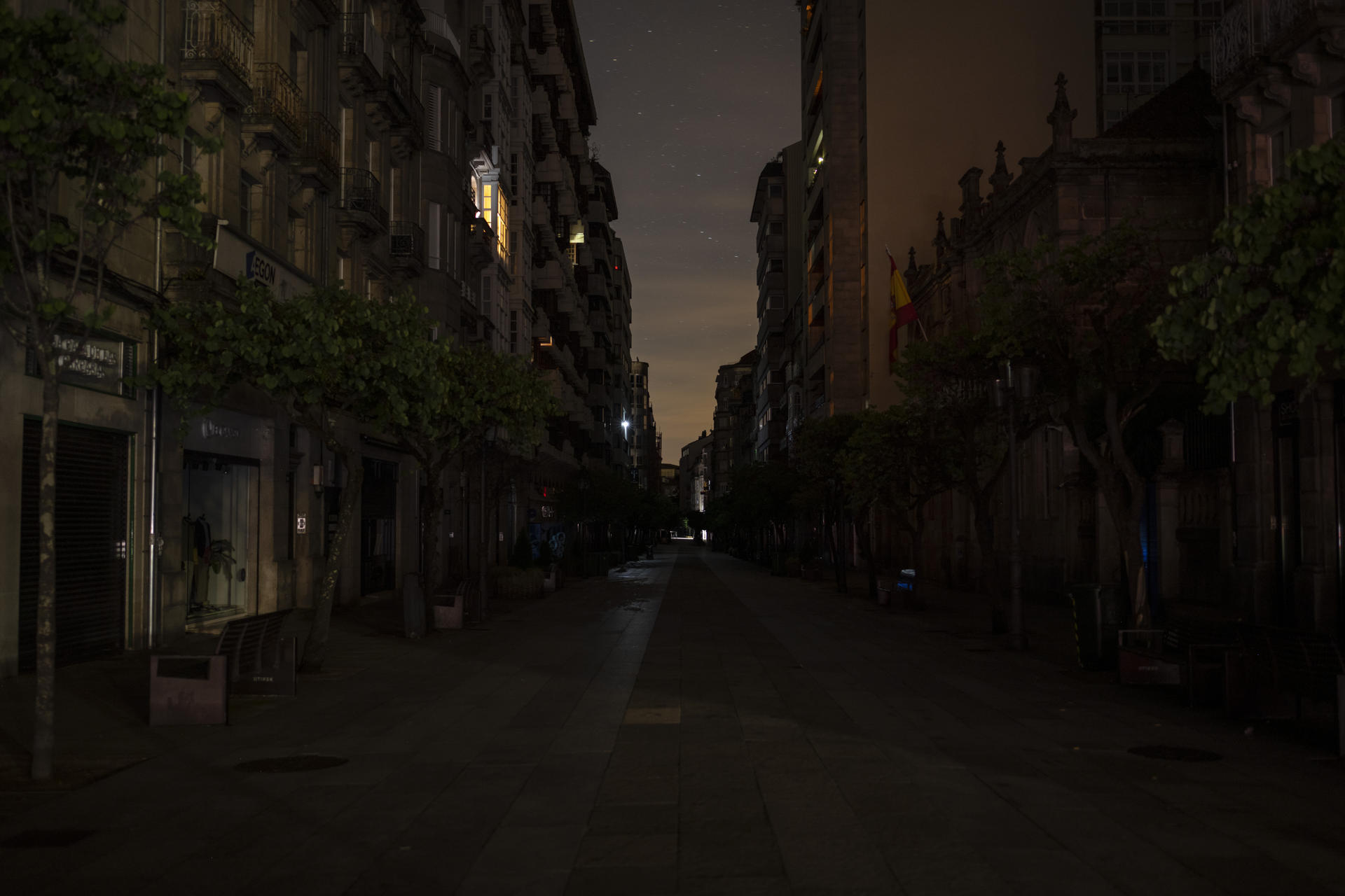 Estanterías vacías en un supermercado de Coruña, durante el apagón.