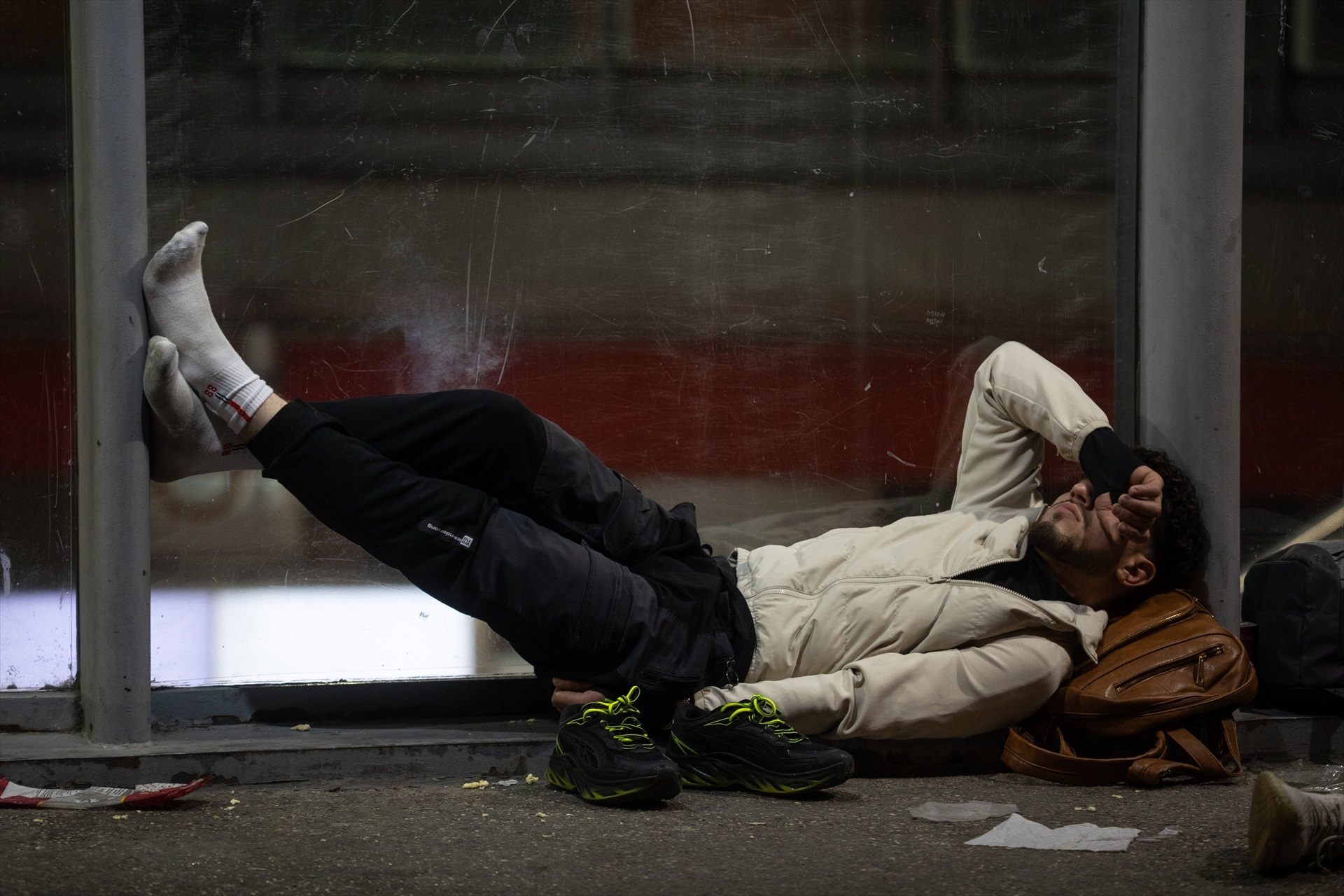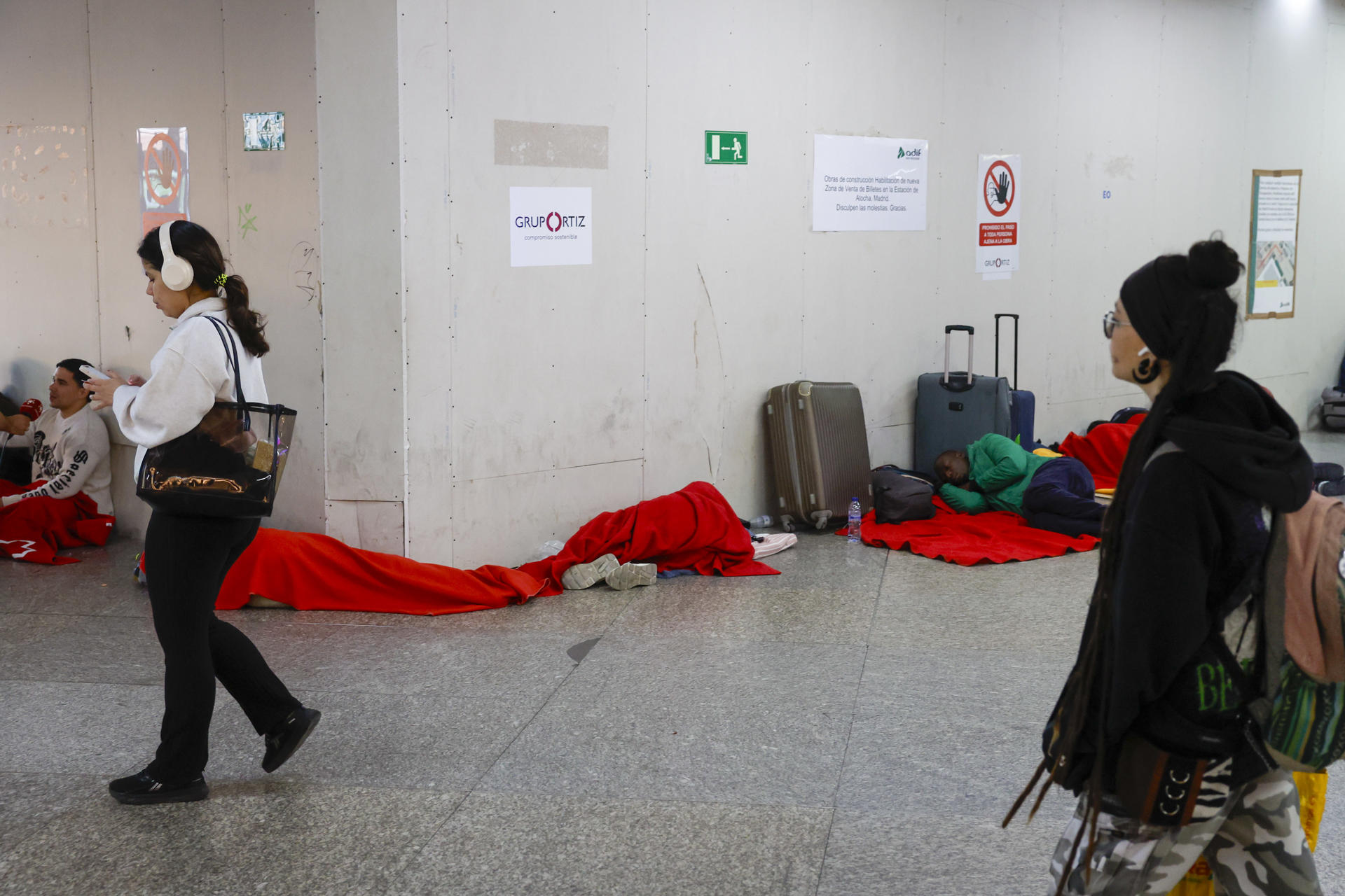 Ante la cancelación de trenes, muchas personas optaron por pasar la noche en estaciones como la de tren Atocha (Madrid).
