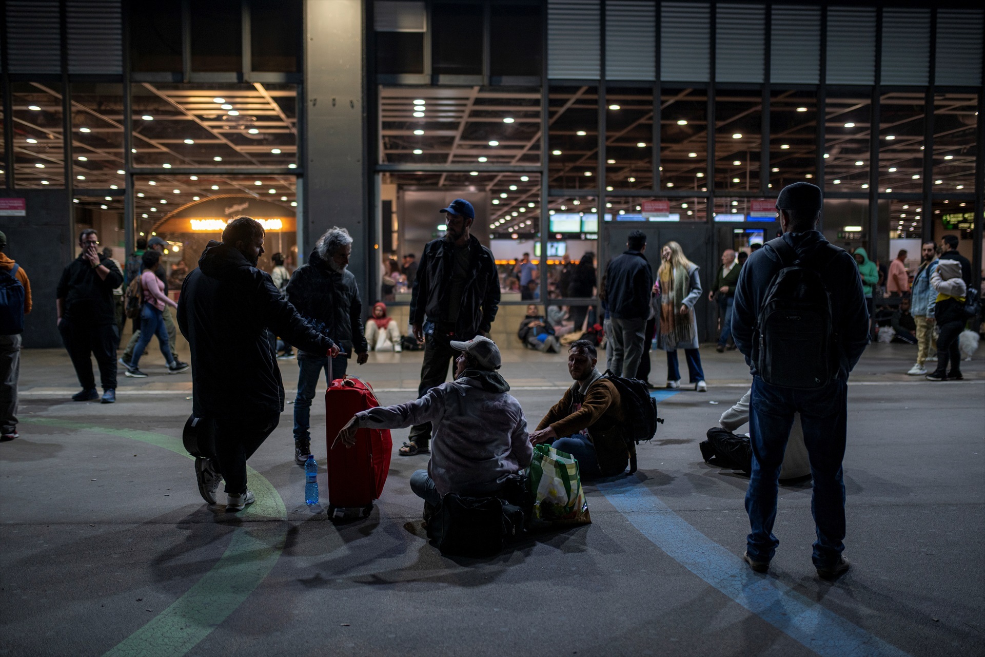 Estación de Sants en Barcelona, abierta durante la noche para refugiar a pasajeros con billetes de Alta Velocidad.