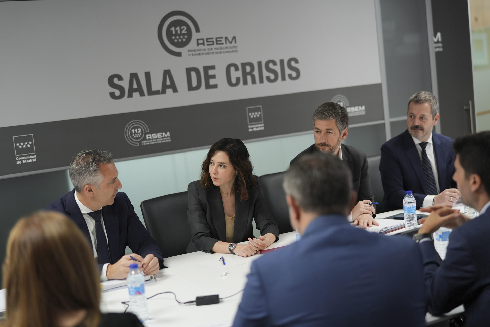 La presidenta de la Comunidad de Madrid, Isabel Díaz Ayuso, presidiendo este martes la reunión del comité de dirección del PLATERCAM, en la sede de la Agencia de Seguridad y Emergencias ASEM 112.
