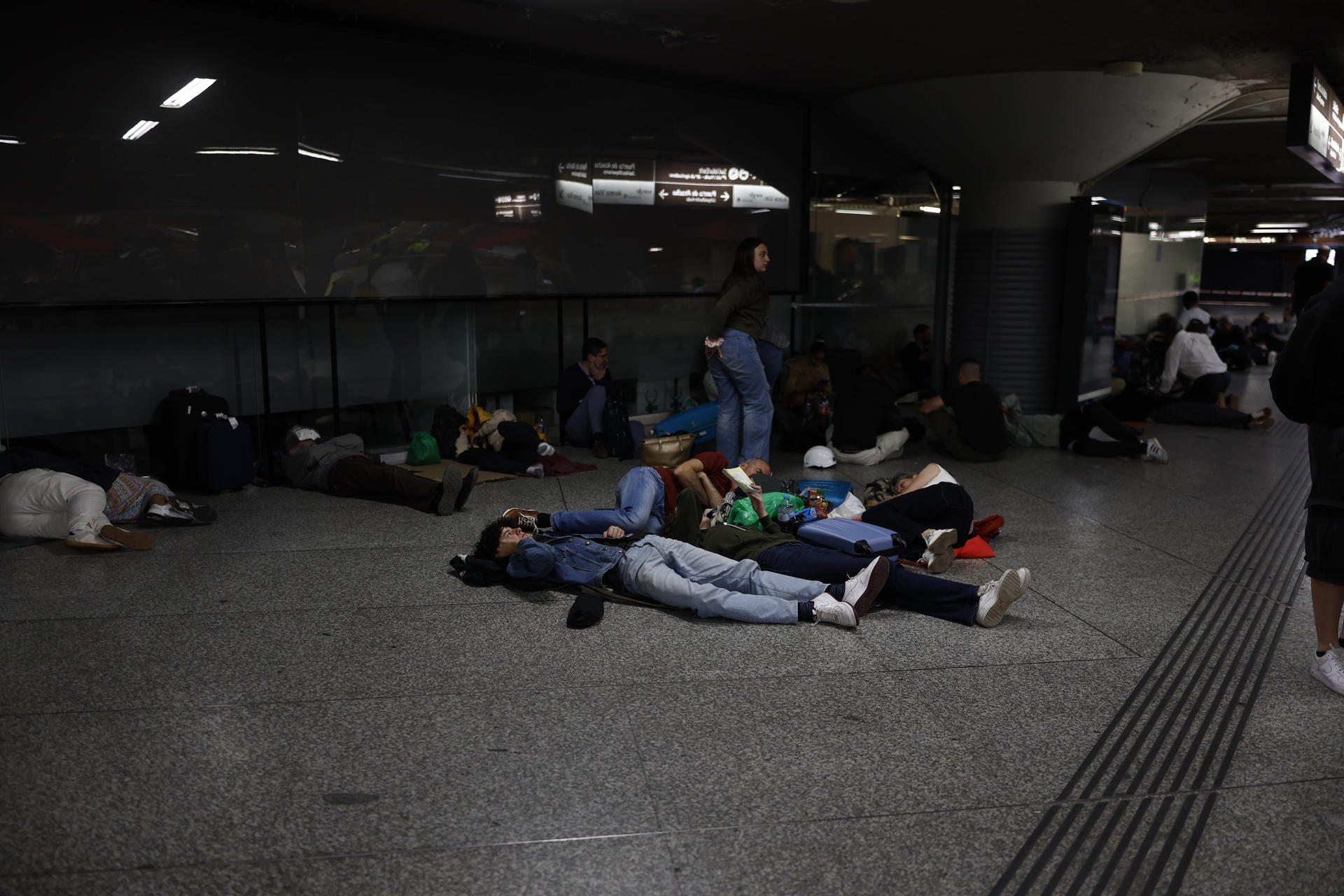 Una de las imágenes del desastre energético que vivió España este lunes fue la de las miles de personas que se quedaron sin posibilidad de desplazarse a sus domicilios y tuvieron que pasar la noche en las estaciones. Adif mantuvo abiertas varias estaciones, entre ellas Atocha y Chamartín, en Madrid, y Sants, en Barcelona, y otras en grandes ciudades como las de Bilbao, Santa Justa en Sevilla o Delicias en Zaragoza.