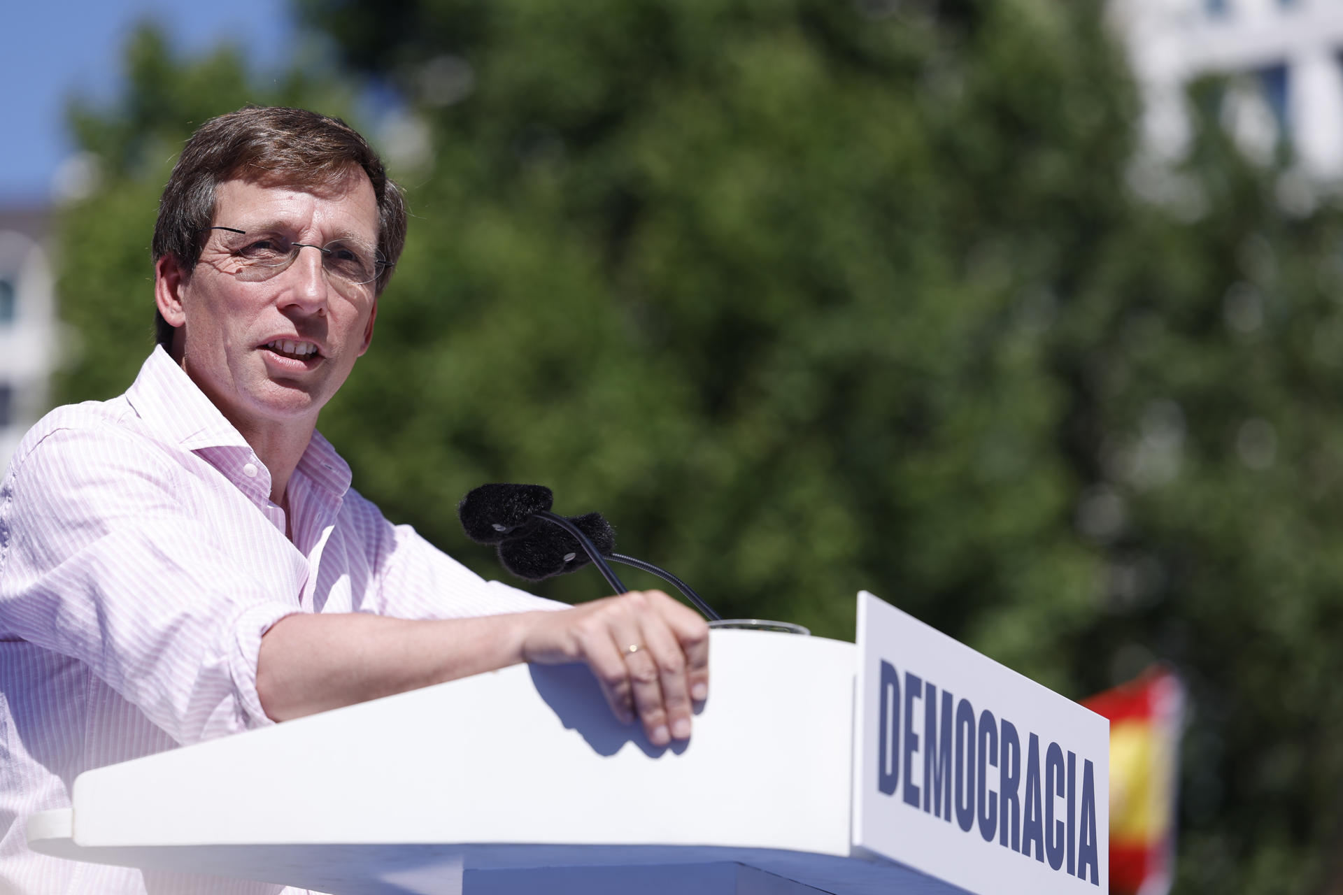 El alcalde de Madrid, José Luis Martínez-Almeida, ha sido el primero en intervenir. "Por encima de siglas, por encima de personas, por encima de partidos, queremos recuperar nuestra democracia, y depende de nosostros", ha proclamado el dirigente popular.