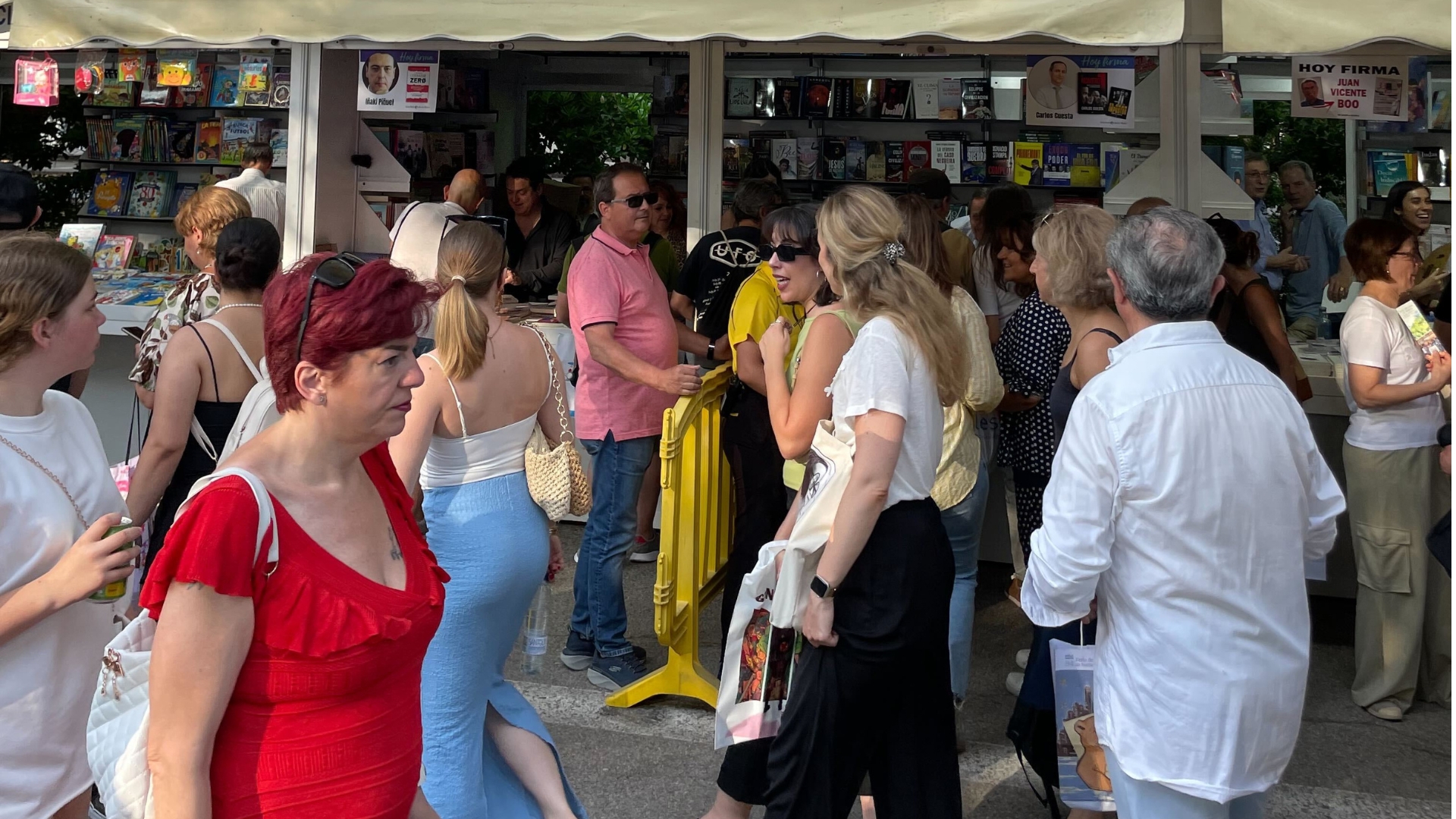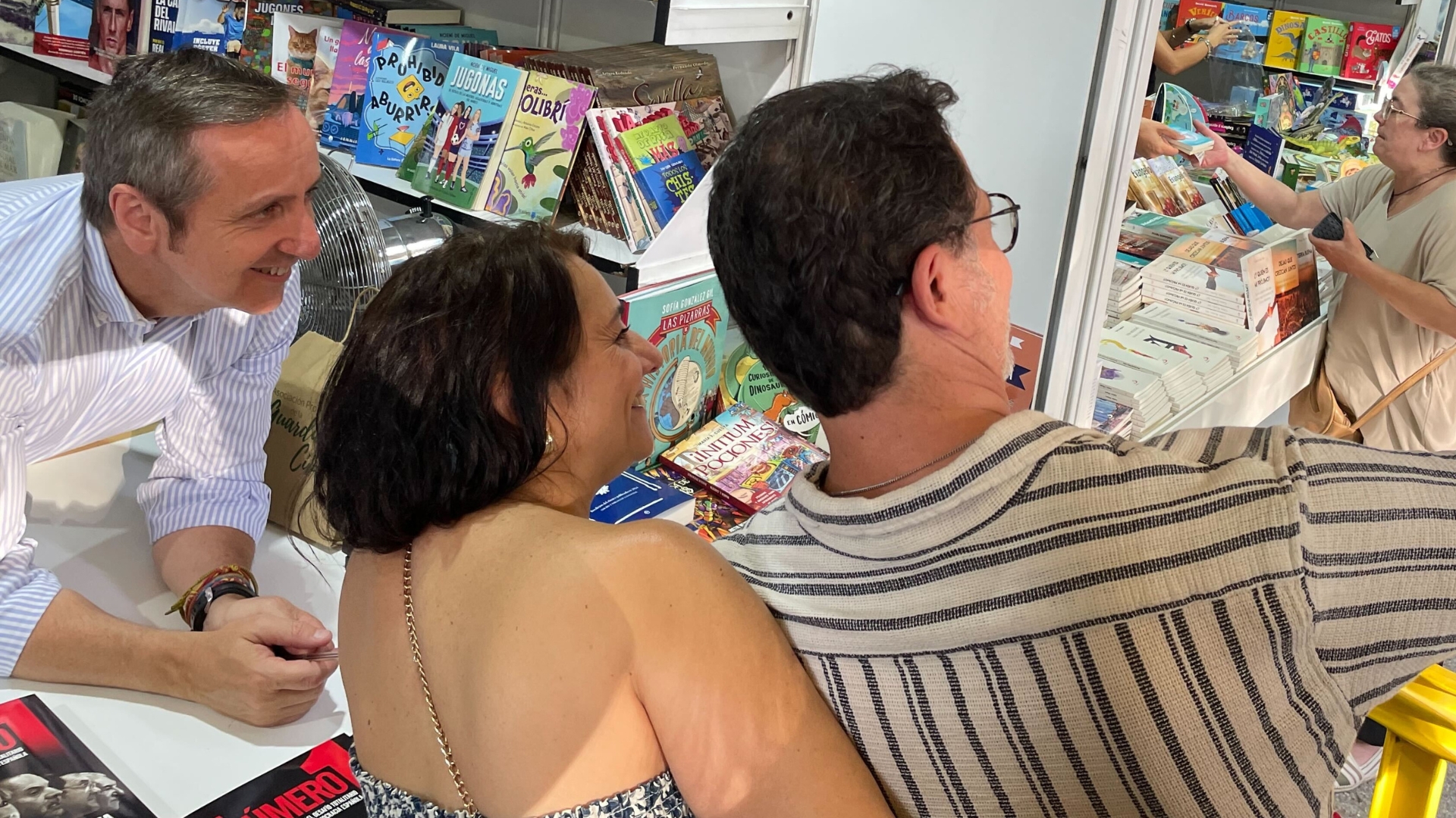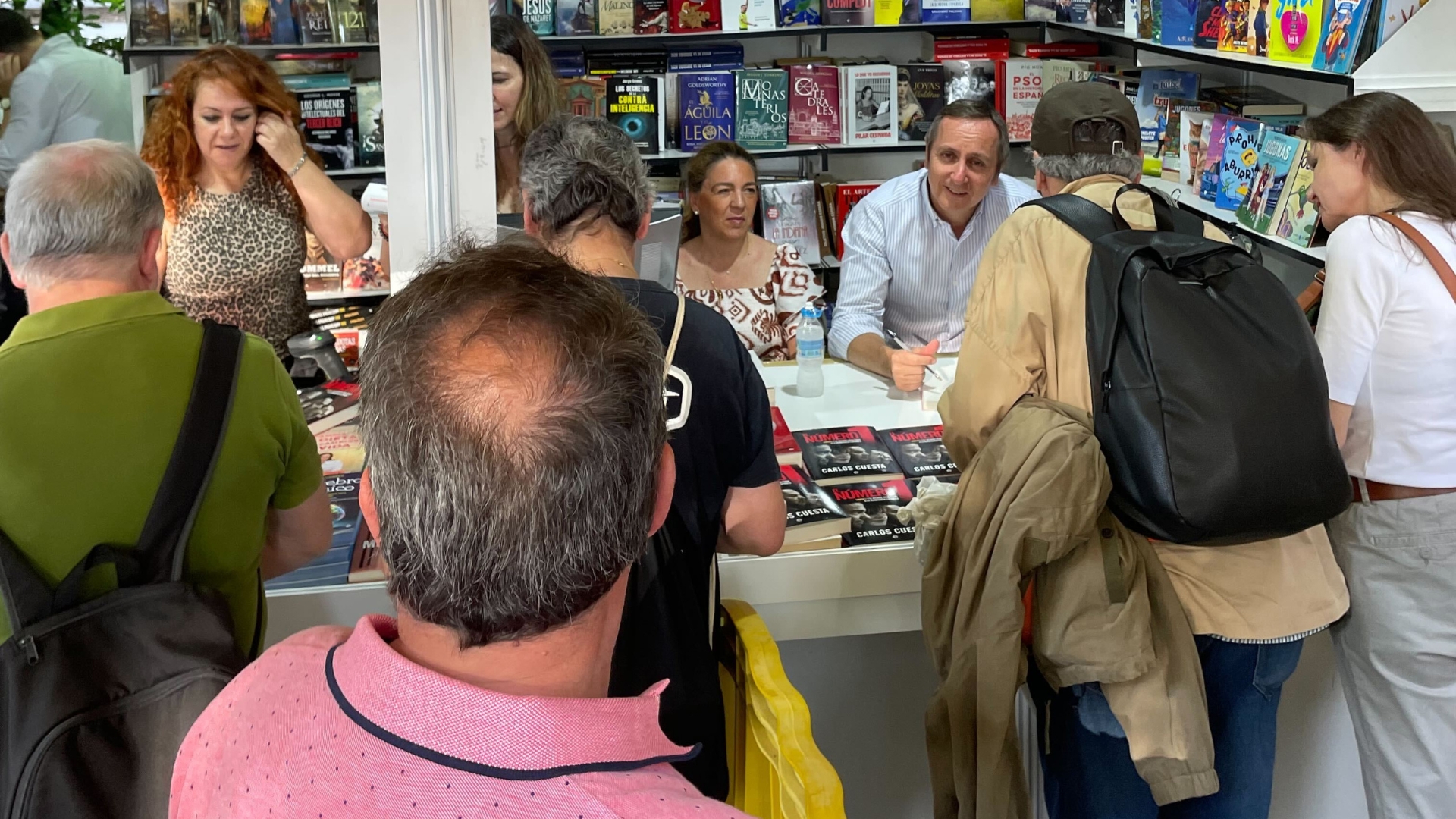El ambiente en la caseta nº284 de la Feria del Libro para la firma de ejemplares de 'El Número 1' por parte de Carlos Cuesta.