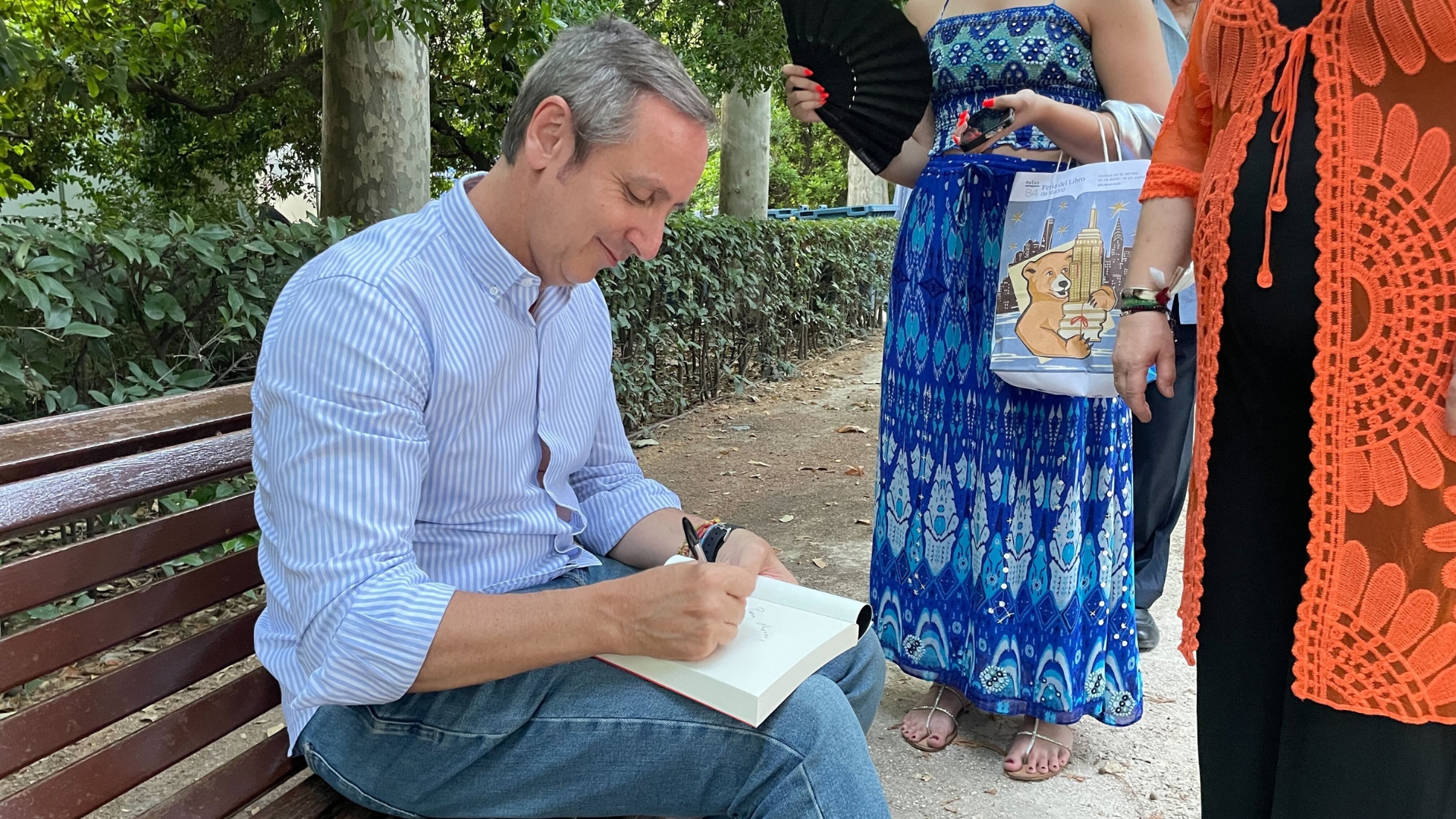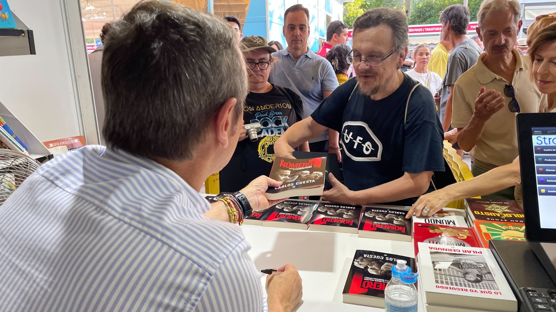 Carlos Cuesta ha firmado ejemplares de su nuevo libro 'El Número 1' en la 84ª edición de la Feria del Libro de Madrid.