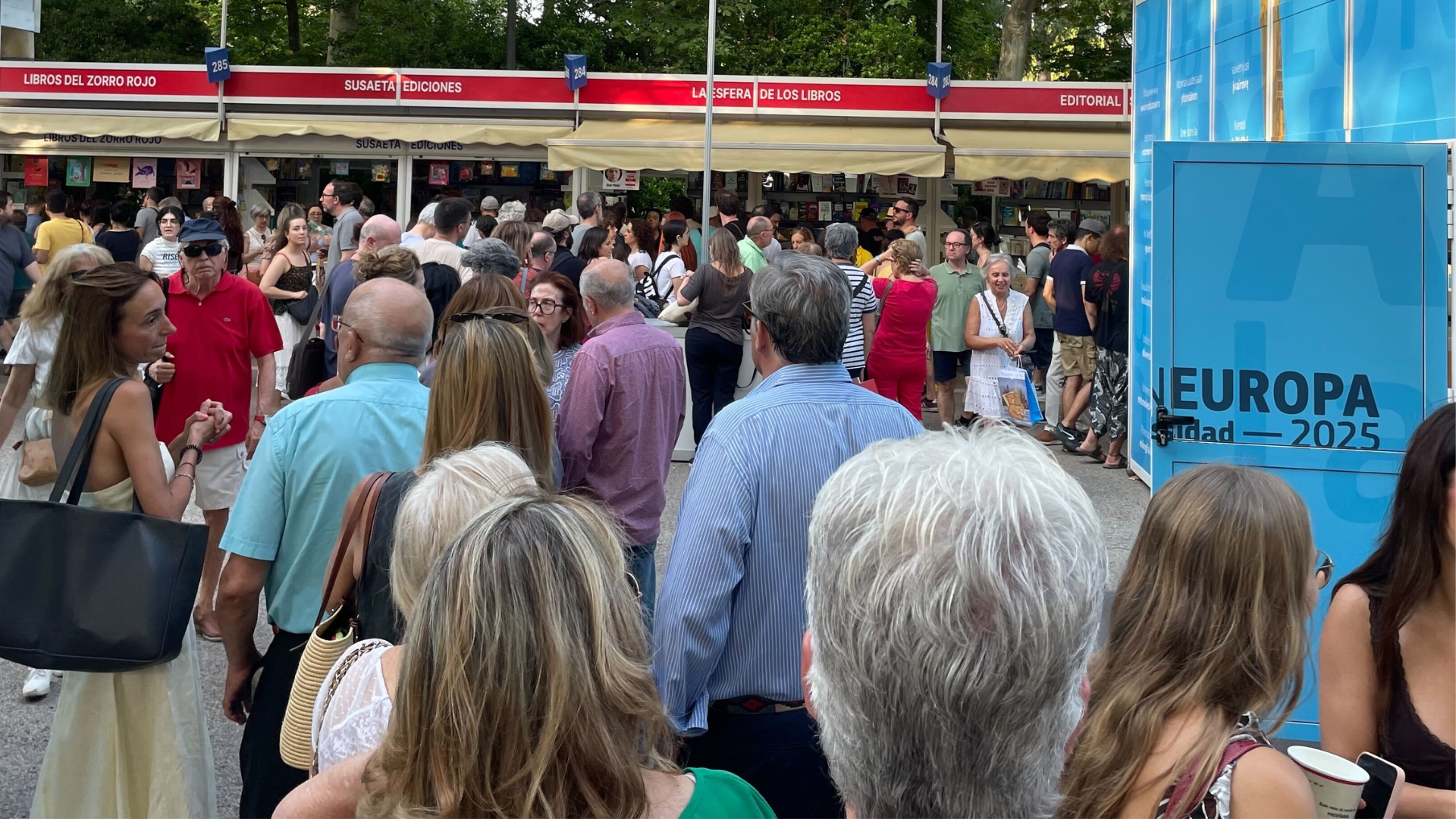 La fila para llegar hasta la caseta de la editorial La Esfera y conseguir la firma de Carlos Cuesta.