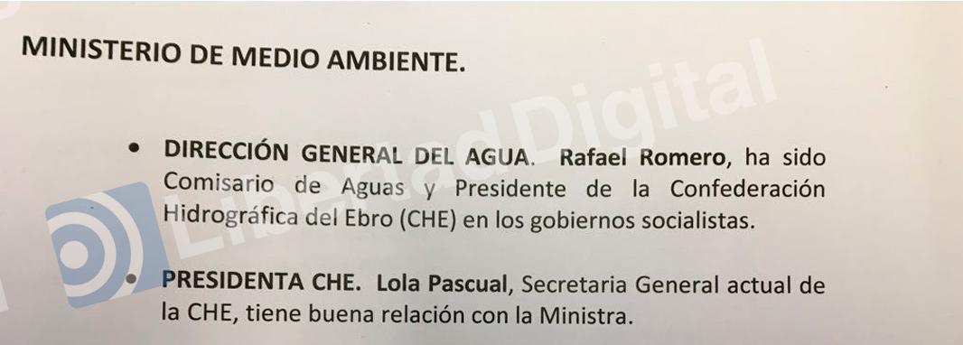 El intercambio de mensajes continúa y Santos Cerdán envía un segundo documento al asesor de Ábalos con otros dos nombramientos, en esta ocasión para el Ministerio de Medio Ambiente, que sería rebautizado como Ministerio para la Transición Ecológica, y que dirigiría durante años Teresa Ribera. "Esto es de Medio Ambiente, por si puedes hacer algo", afirma Santos Cerdán a lo que Koldo contesta con un "ok".