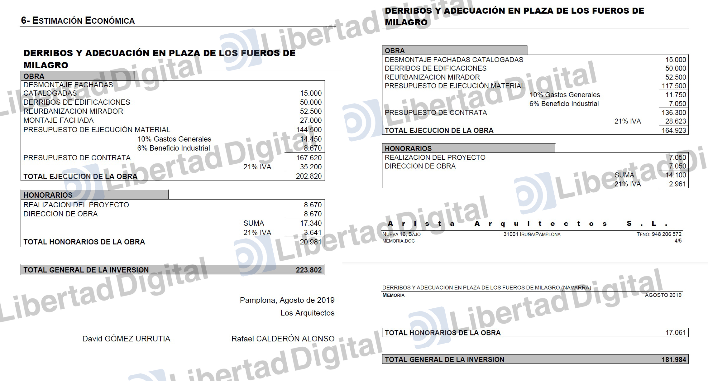 Esa misma noche, Santos Cerdán envía una segunda memoria del proyecto, cuyo presupuesto ha aumentado en 41.818 euros hasta un total de 223.802 euros. "Elimi a el anterior y entrega este", escribe Santos Cerdán. La presunta comisión ilegal se camufla en el "presupuesto de ejecución material" de la obra que pasa de 117.500 a 144.500 euros. Además, el "presupuesto de contrata" se infla de 136.300 a 167.620 euros, mientras la "realización del proyecto" y la "dirección de obra" pasa de 7.050 euros respectivamente, hasta 8.670 euros en ambos conceptos.