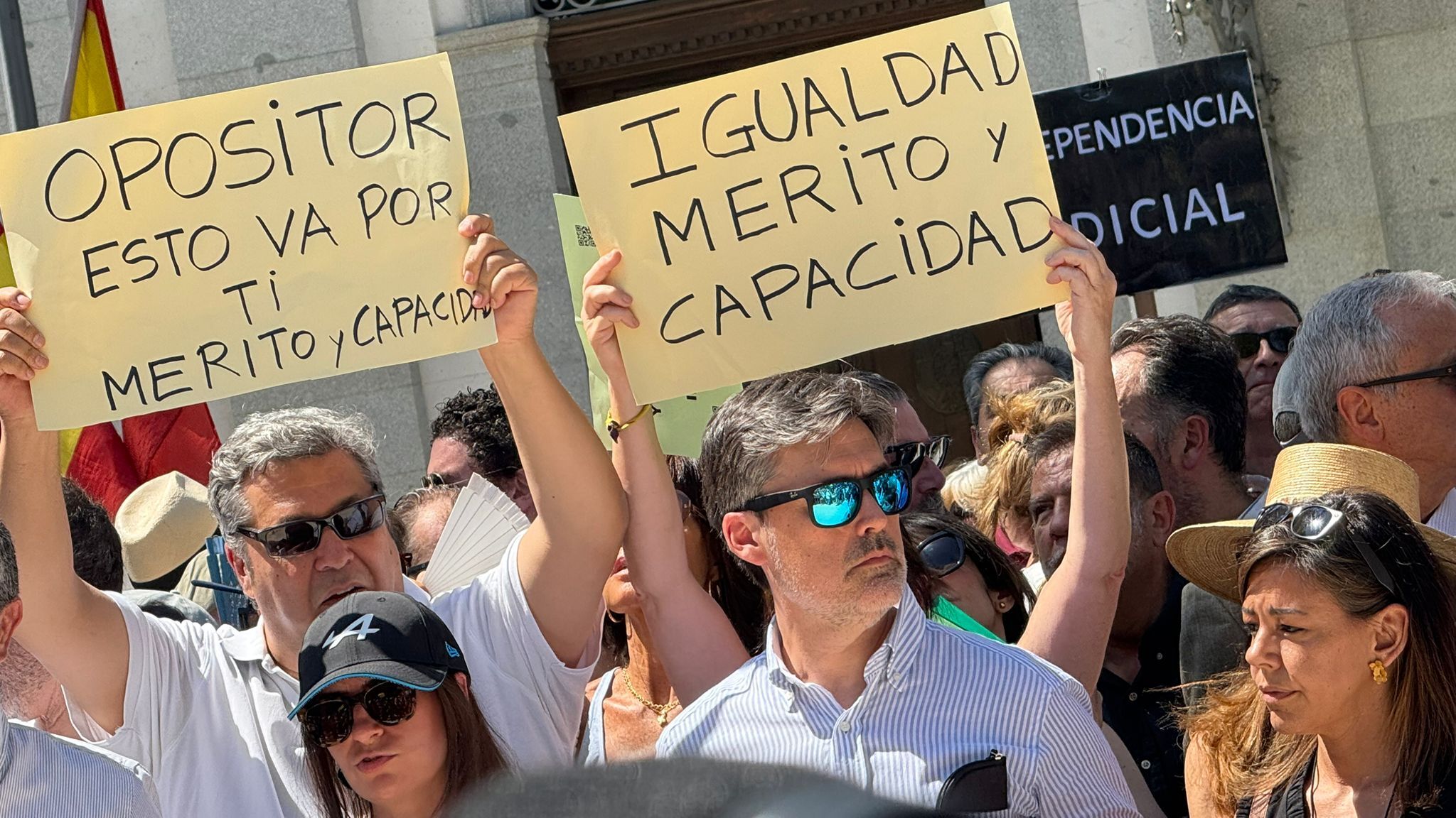 Otras pancartas en apoyo a los jueces y fiscales en las que es hace hincapié a principios constitucionales: "Opositor esta va por ti. Mérito y capacidad" e "Igualdad, mérito y capacidad".