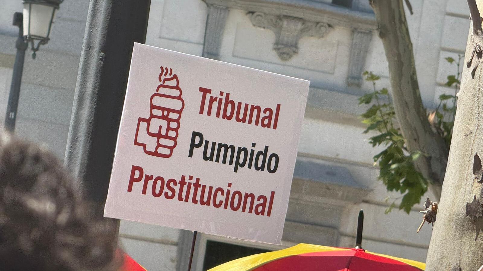 Con la frase “Tribunal Pumpido Prostitucional" se ha criticado al Tribunal Constitucional presidido por Cándido Conde-Pumpido.