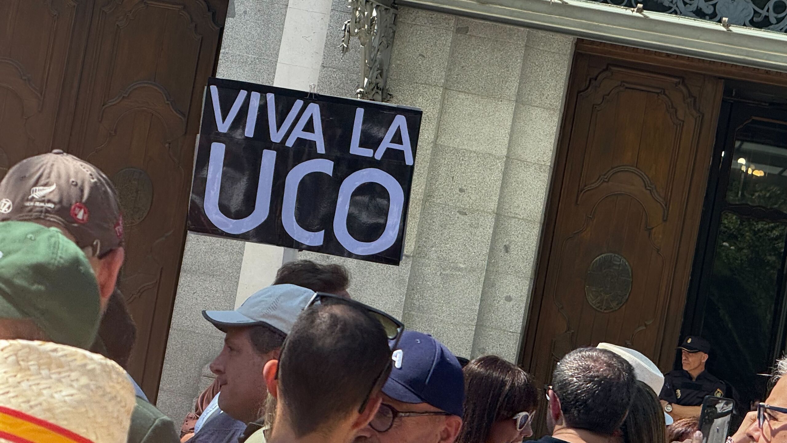 Uno de los lemas de las pancartas "Viva la UCO", una clara señal de respaldo a la Unidad Central Operativa de la Guardia Civil.