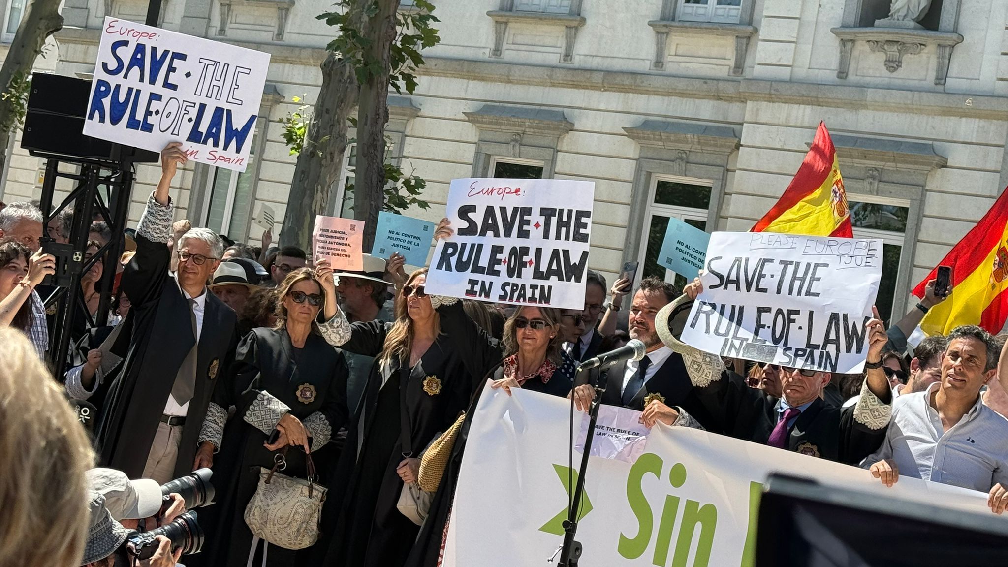 Miles de personas han querido arropar este sábalo a los jueces y fiscales protestando frente al Tribunal Supremo en contra del asalto judicial del Gobierno de Pedro Sánchez. En la protesta, han estado presentes miembros de la Carrera judicial y fiscal de toda España.