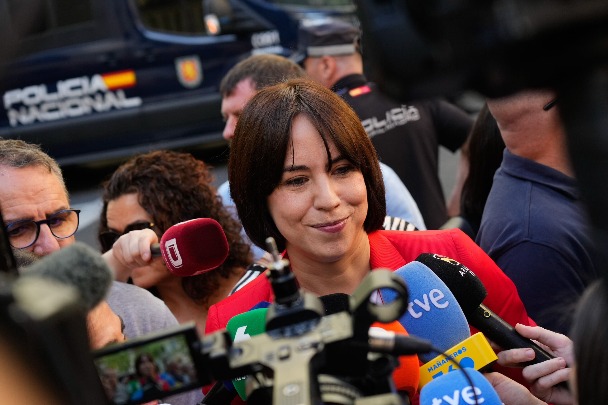 La ministra de Ciencia, Innovación y Universidades, Diana Morant, hablando ante la prensa en Ferraz.