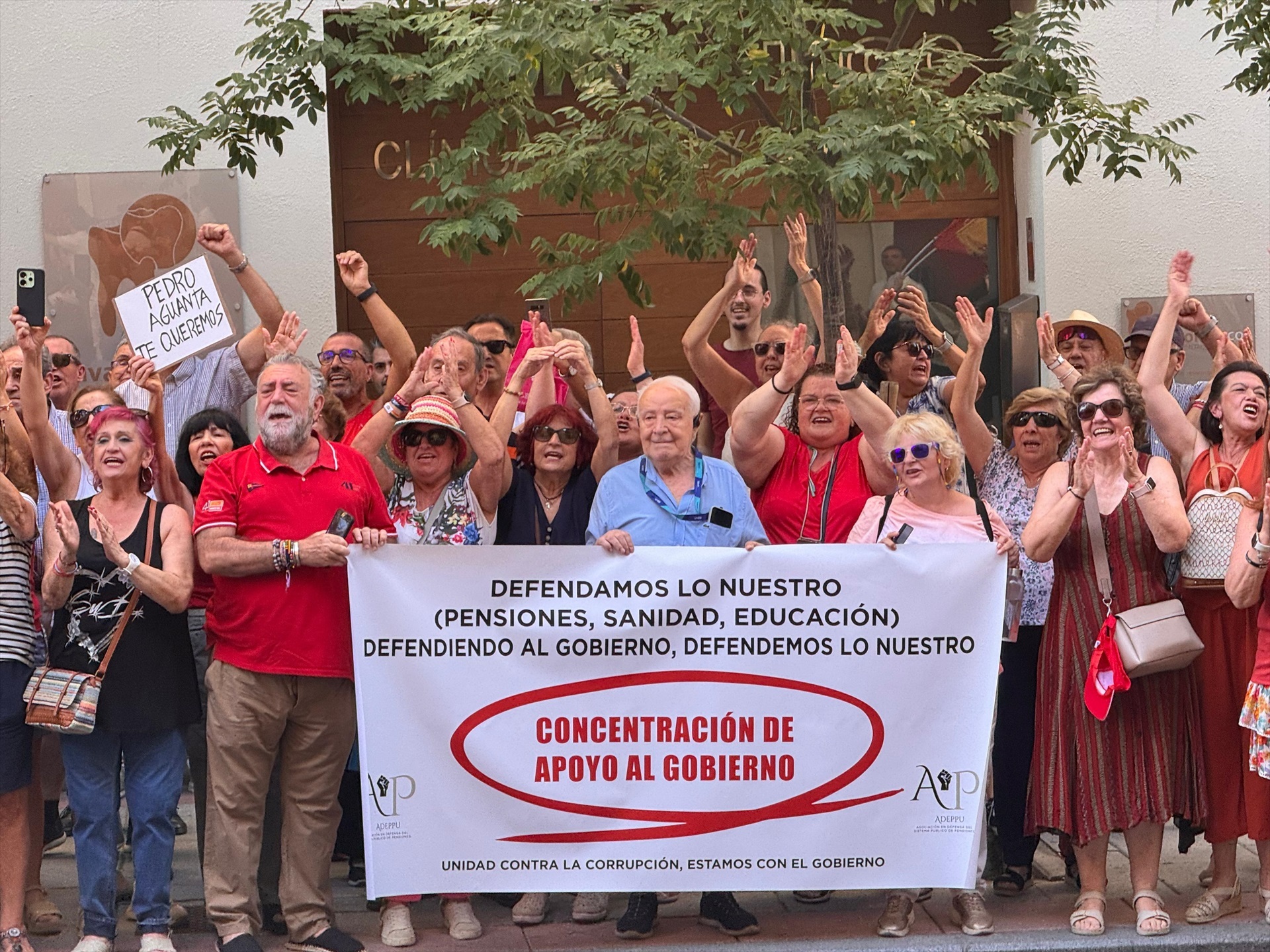 Frente a la sede se manifestaron unas treinta personas con una pancarta de apoyo explícito al Gobierno.