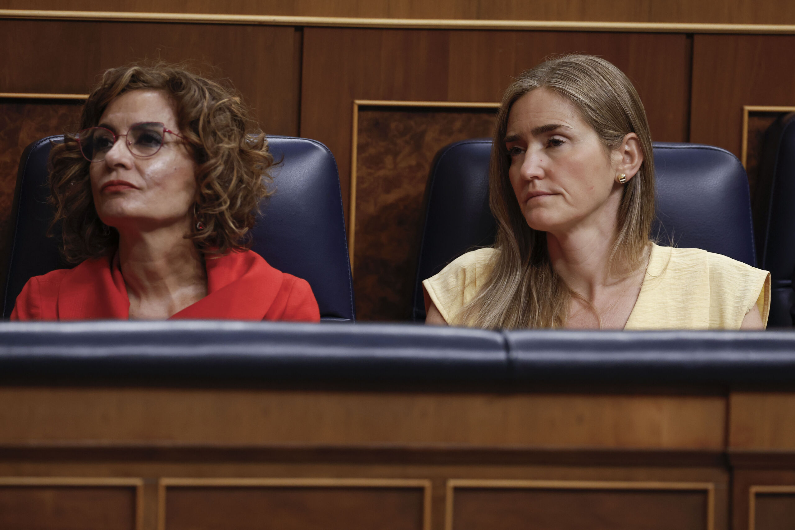 María Jesús Montero, muy dada a gesticular, mantuvo un gesto serio en el arranque de la comparecencia junto a la vicepresidenta tercera y ministra para la Transición Ecológica y Reto Demográfico, Sara Aagesen.