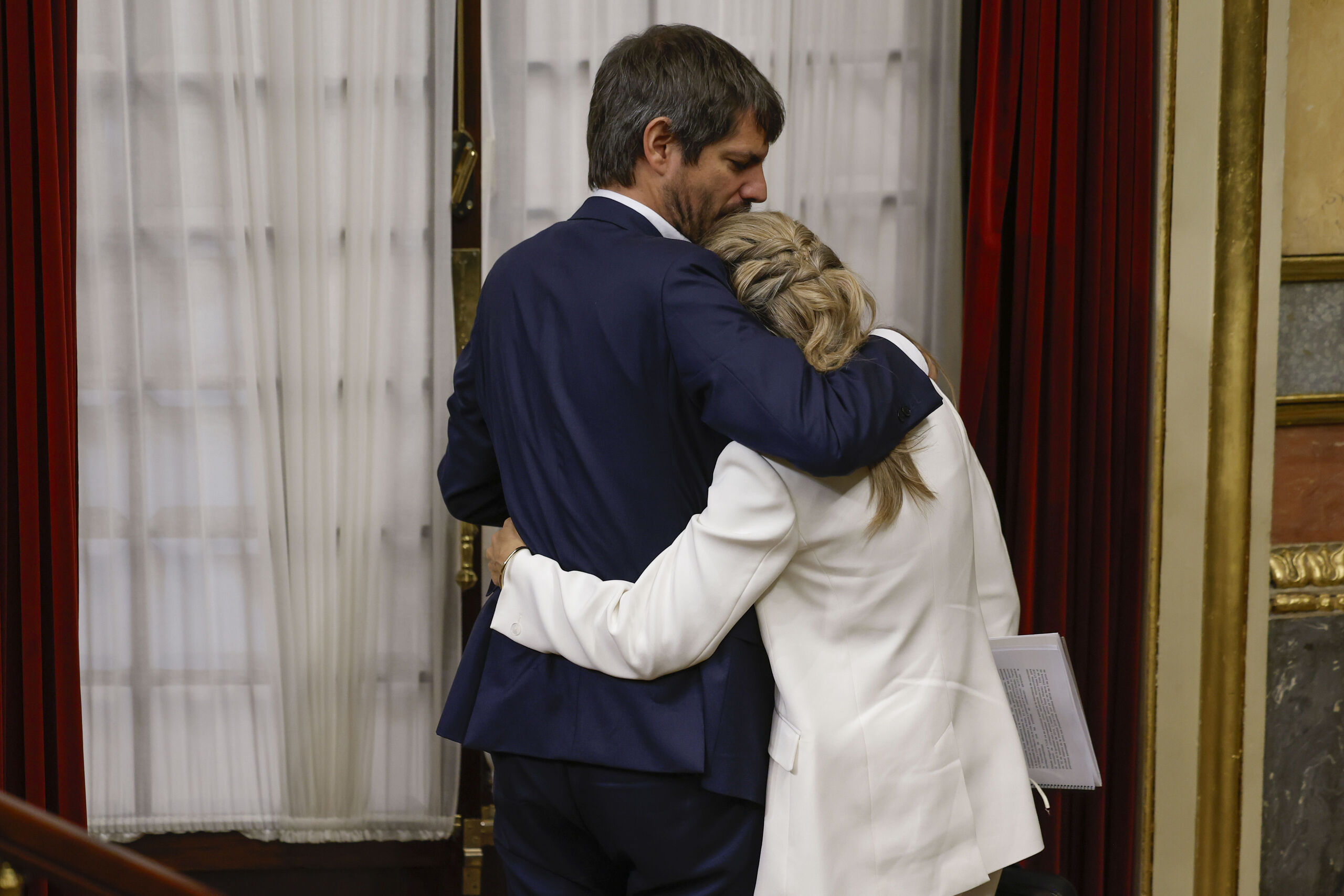Ernest Urtasun consoló a la ministra de Trabajo justo antes de entrar al pleno.