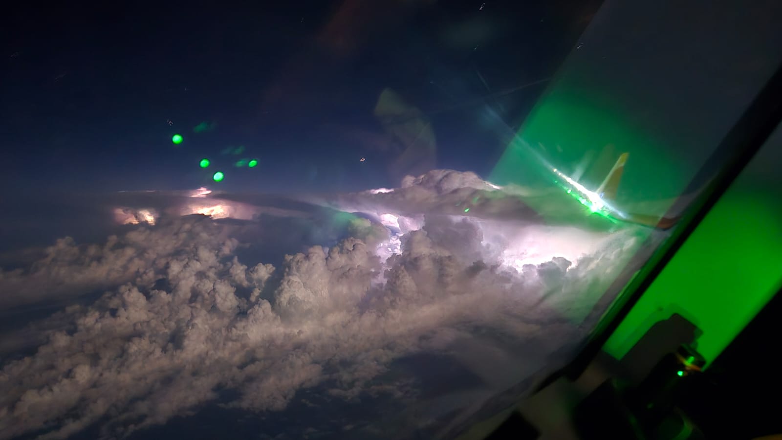 Una de esas tormentas eléctricas fue captada desde un avión comercial el sábado por la noche a la altura de Barcelona. En dichas imágenes se puede ver la espectacularidad de los rayos iluminando el cielo mientras el Airbus continúa su trayecto hacia Madrid.